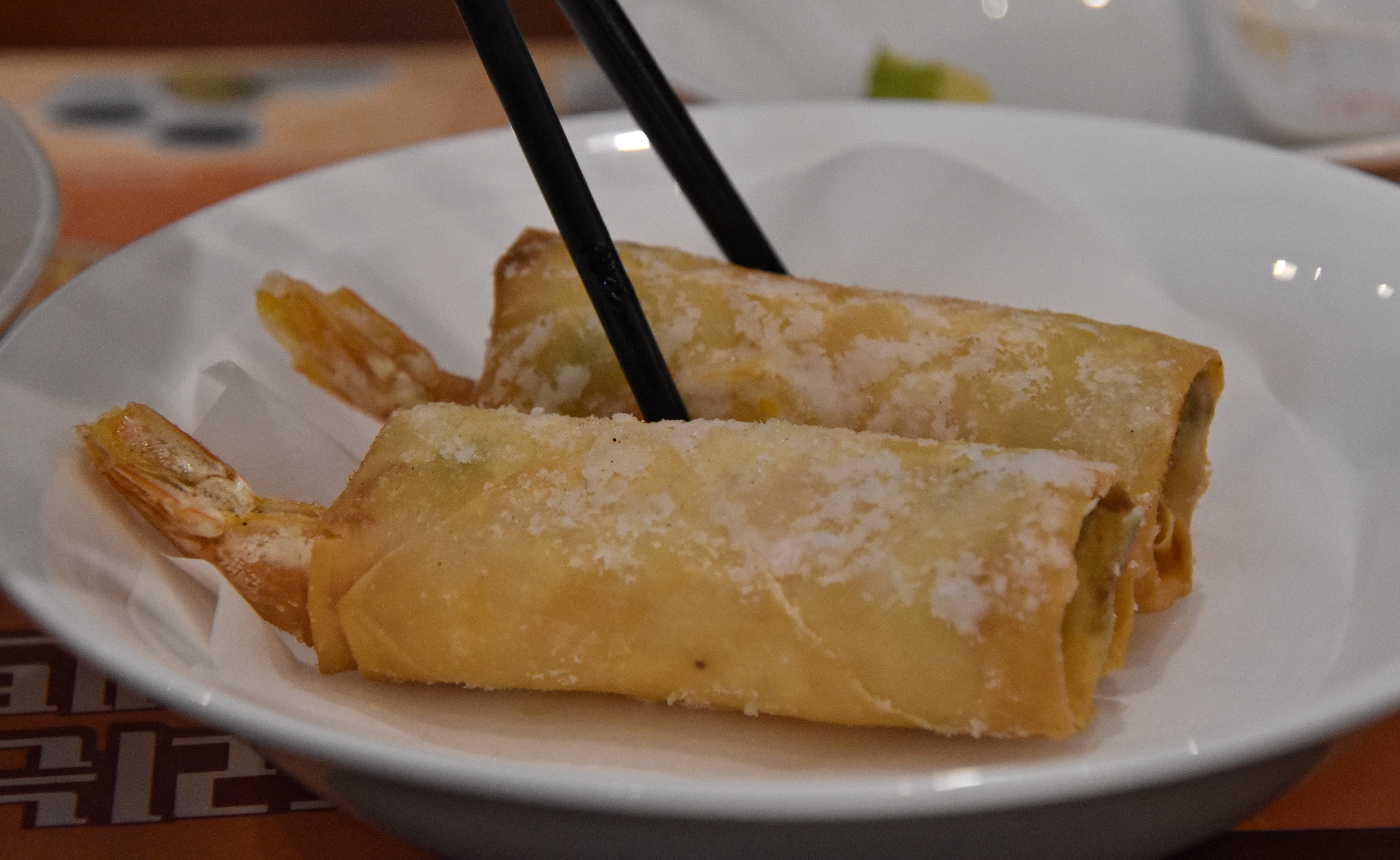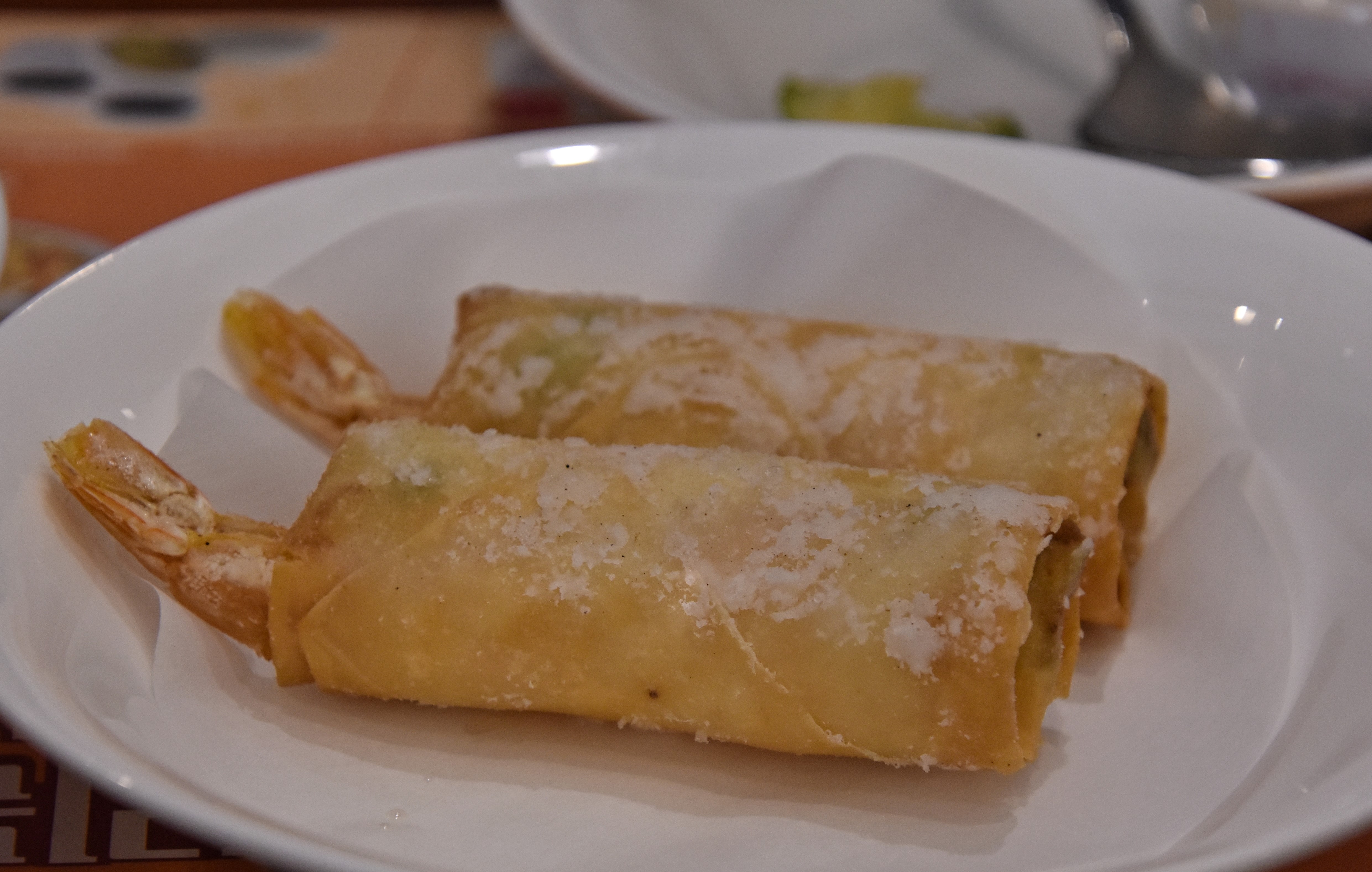 새우가 한마리 통째로 들어있고 안에는 크림소스와 잘게 썬 샐러리가 들어있습니다. 제가 샐러리향을 안좋아하는데도 이 춘권은 정말 맛있어서 이미 한피스 먹고도 항상 더 추가할까말까 고민하게 만드는 메뉴인데요.