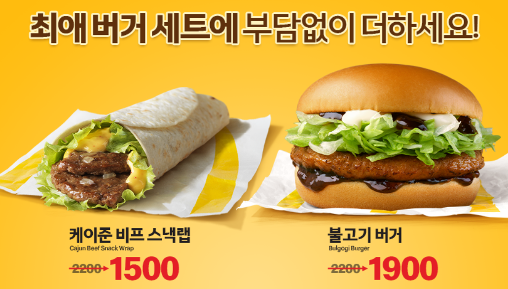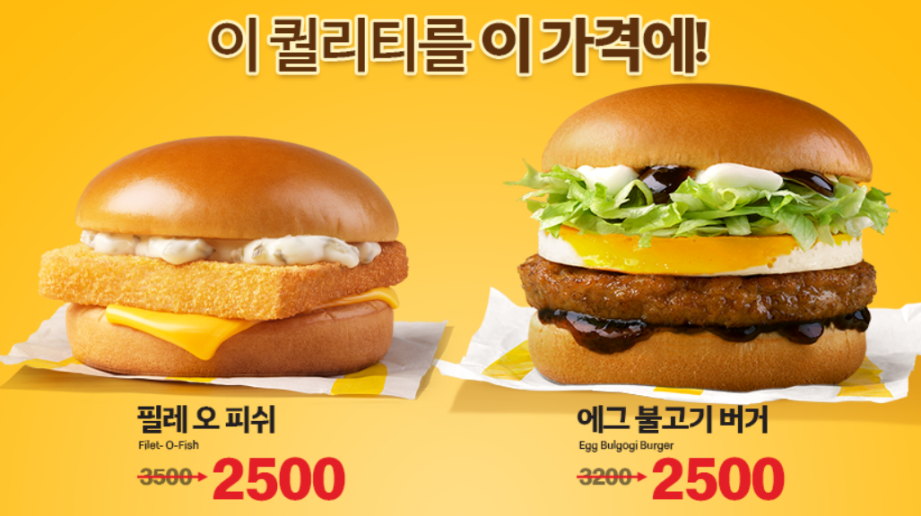 - 에그 불고기 버거 2500원으로 저렴하게 이용하실 수 있습니다.