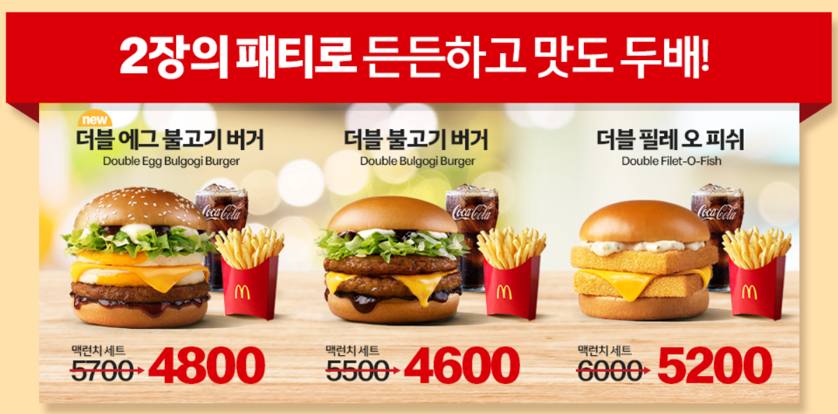 신메뉴 더블 에그 불고기 버거 세트 4800원