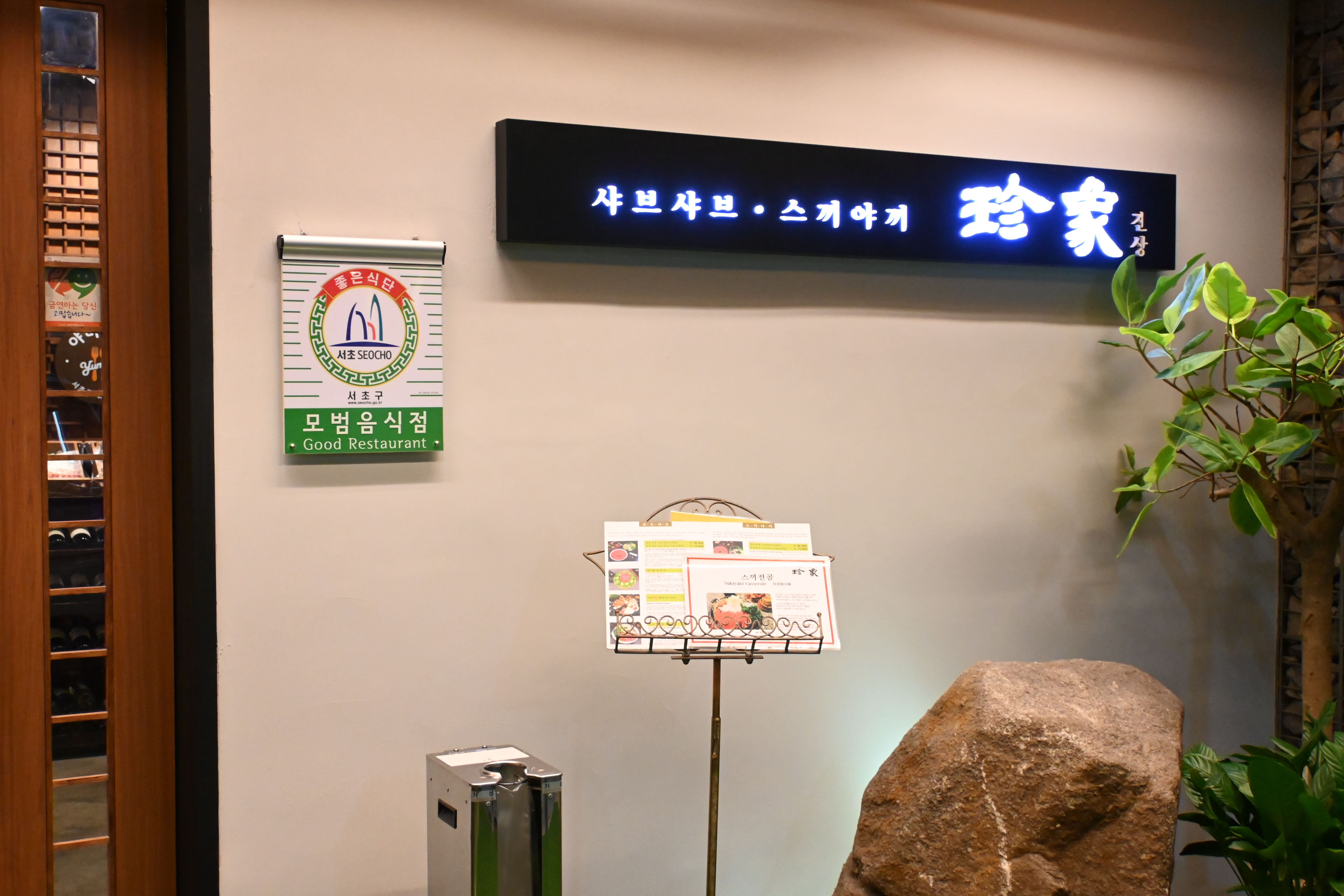 들어가는 입구에는(주차장 쪽 출입구) 모범음식점 간판이 걸려있어요. 입구만 봐도 정갈정갈한 느낌이나고 왜인지 모르게 일본 느낌이 나지요? 준비된 상자리도 정갈하니 깔끔해요. '진상' 은 테이블도 칸이 나눠져 있어서 룸에서 식사하는 듯한 아늑한 느낌이 나서 참 좋습니다.