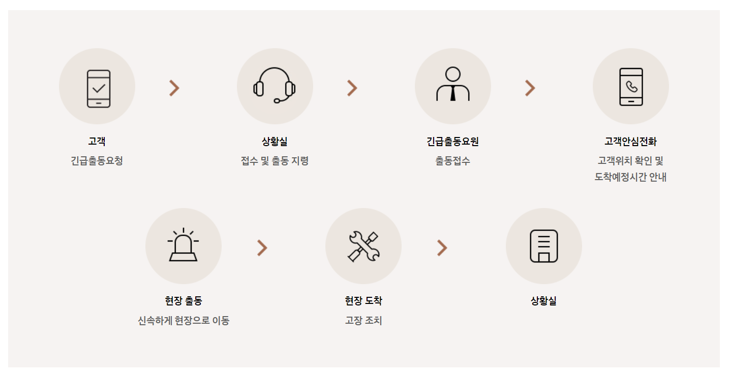- 경미한 고장은 직원이 출동하여 현장에서 응급조치가 가능 합니다.