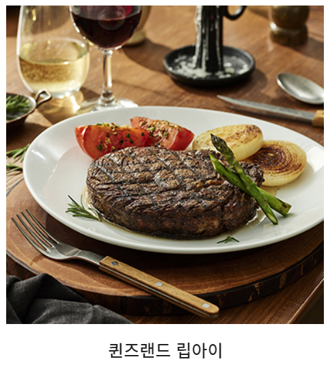 1. 퀸즈랜드 립아이 : 두툼하고 부드러운 육질의 꽃등심 스테이크. 호주산 380g