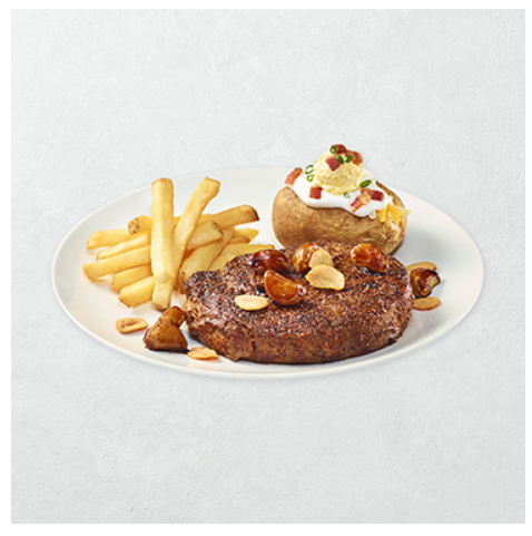 부드러운 돼지갈비에 아웃백만의 특제소스를 발라 구워낸 바비큐 요리. 돼지갈비 스페인산