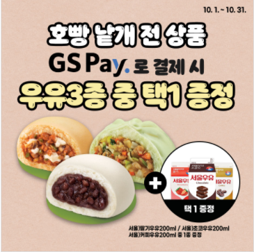 GS25는 전자레인지에 데워서 즐길 수 있는 차별화 상품인 고기가득만두호빵, 고추잡채만두호빵 2종을 9월9일 선보였고 9월 30일부터 호빵 찜기를 본격적으로 운영하며 추가적으로 상품을 출시하고 있는데요. 출시된 호빵 중 판매 인기 상품은 단팥호빵에 이어 단호박치즈호빵(1400원), 꿀고구마호빵(1300원), 소다향 커스터드크림의 구름소다호빵(1400원) 등 입니다. 21일 출시되는 오모리김치찌개 맛을 잘 살린 오모리김치만두호빵(1900원)도 큰 인기를 끌 기대 상품 중 하나입니다. 단호박크림과 부드러운 크림치즈커스터드가 들어간 단호박치즈호빵과 견과류와 꿀이 들어간 꿀씨앗호빵(1400원) 등은 GS25가 작년에 이미 출시했던 상품 중 인기가 가장 많았던 상품들을 새롭게 다시 선보인 상품입니다. 이러한 상품들은 10월 31일까지 농협카드로 결제 시 호빵 번들 전 상품 1+1행사도 하고 있습니다. 또 여러가지 증정 행사도 하고 있으니 GS25홈페이지 이벤트란을 참고 바랍니다.