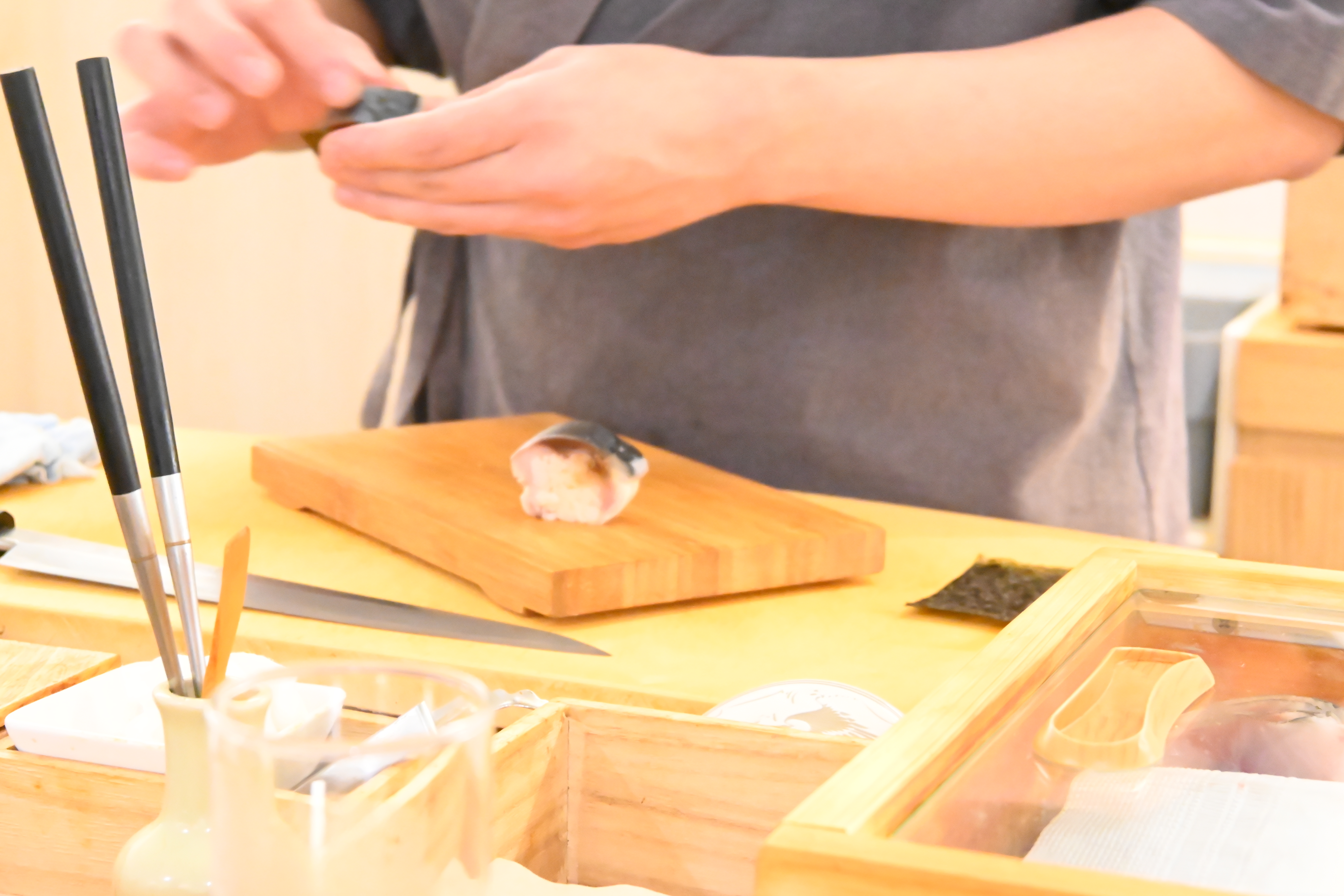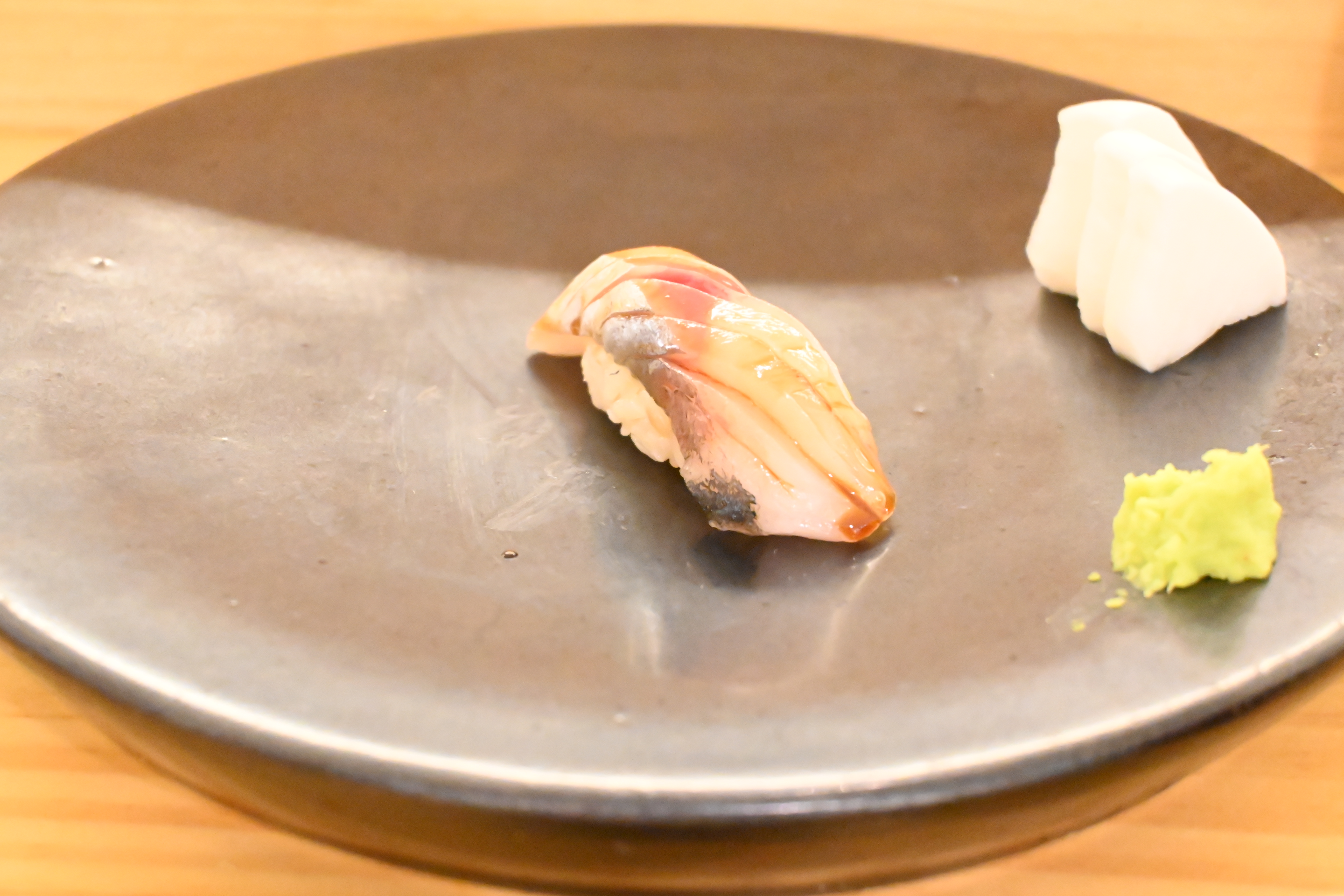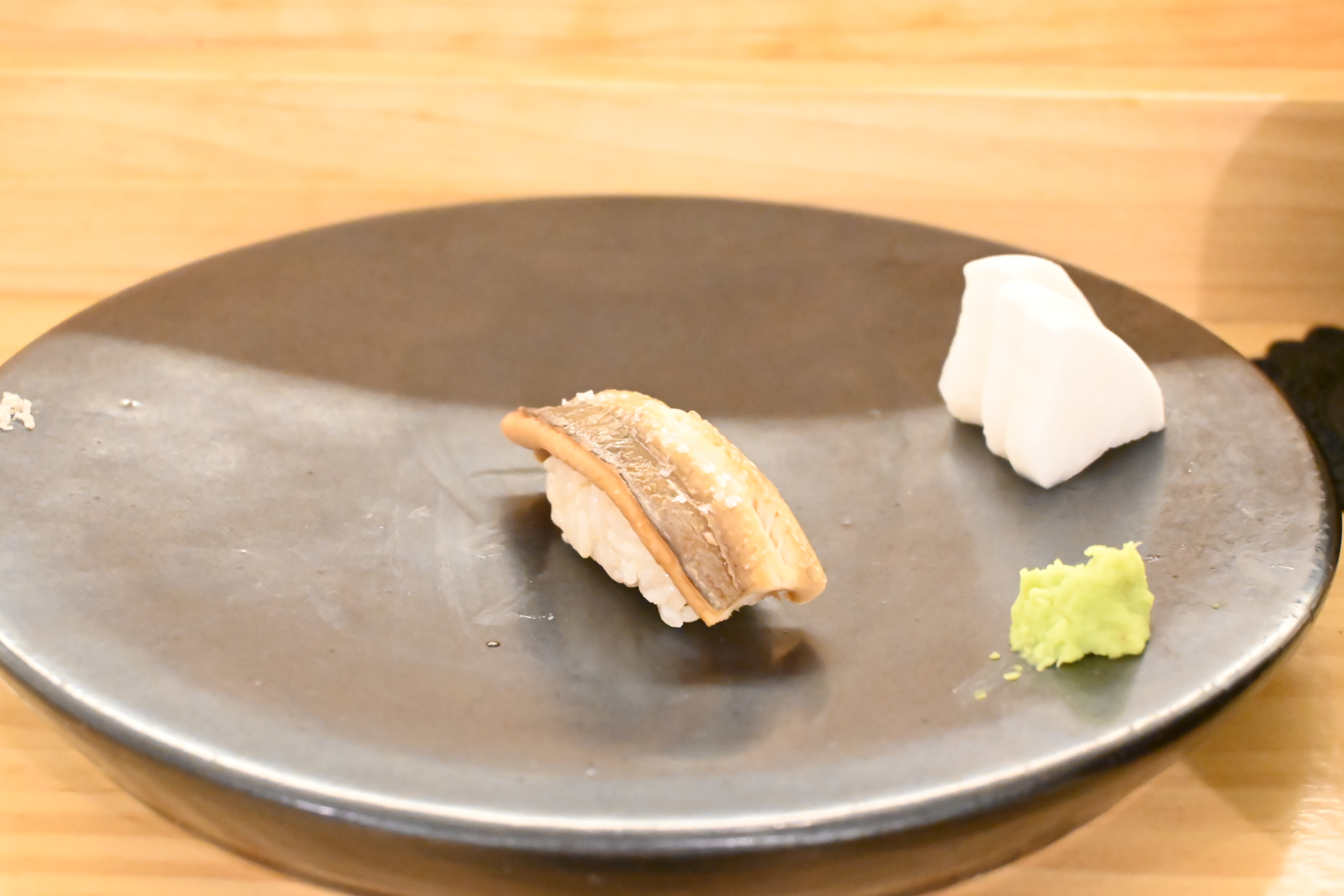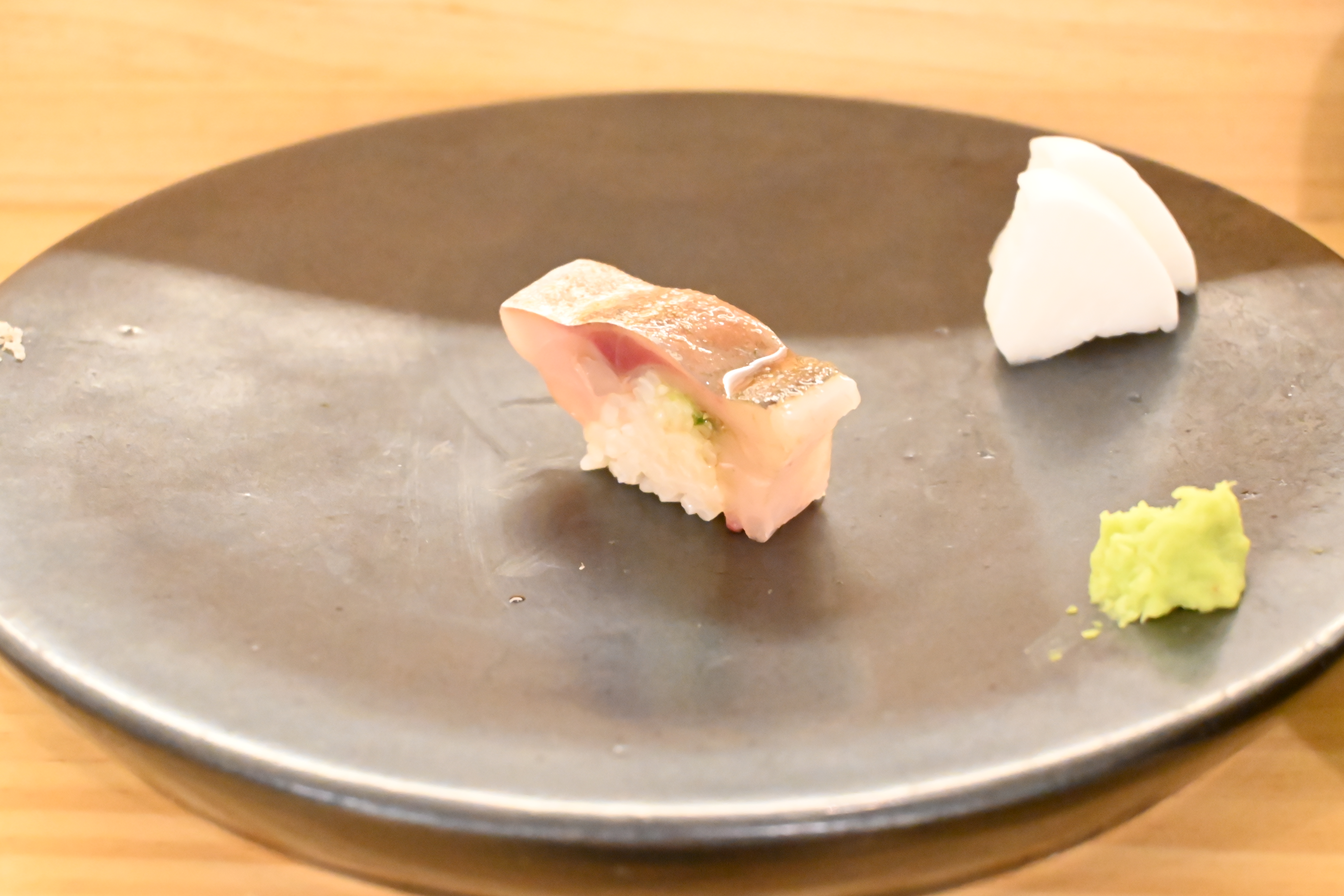 제가 시메사바에서 헤어나오질 못하고 지인은 전갱이스시의 파마늘 생강 페스토에서 헤어나오지 못하는걸 보고 쉐프님께서 센스있게 만들어주신 전갱이 봉초밥입니다. 이 전갱이 봉초밥에는 파마늘 생각 페스토가 들어있어 다시한번 정말 맛있게 먹었습니다. 보통 봉초밥은 이미 만들어진것만 봐서 직접 만드는걸 보니 재미도 있더라구요.