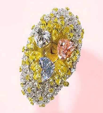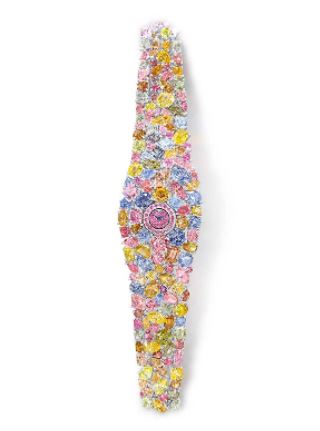 시계에 장식되어 있는 희귀한 다이아몬드 색상 중 일부는 팬시 비비드 옐로우, 팬시 인텐스 핑크,
