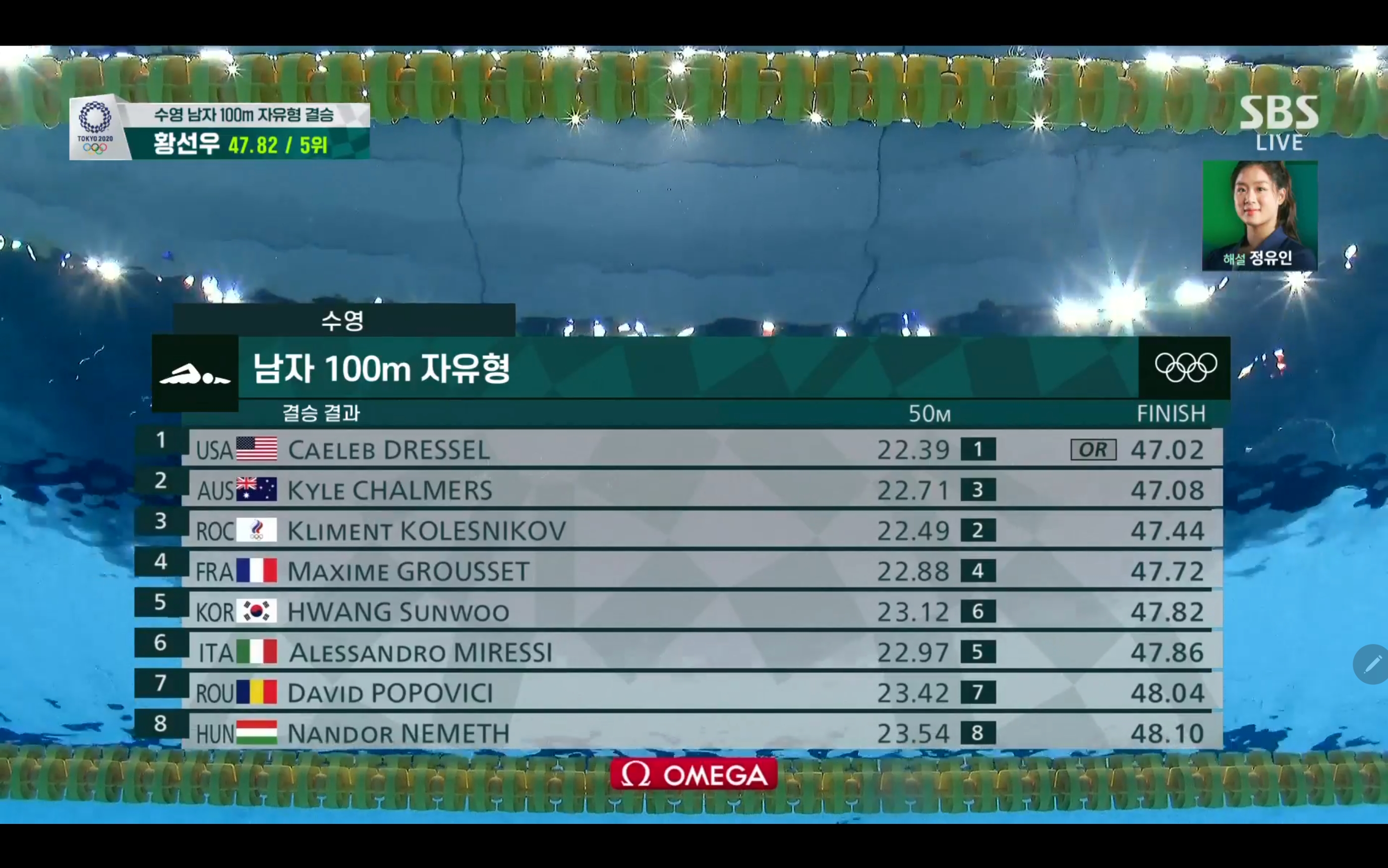 황선우 수영 남자 100m 자유형 결승 경기장면 첨부 선수소개