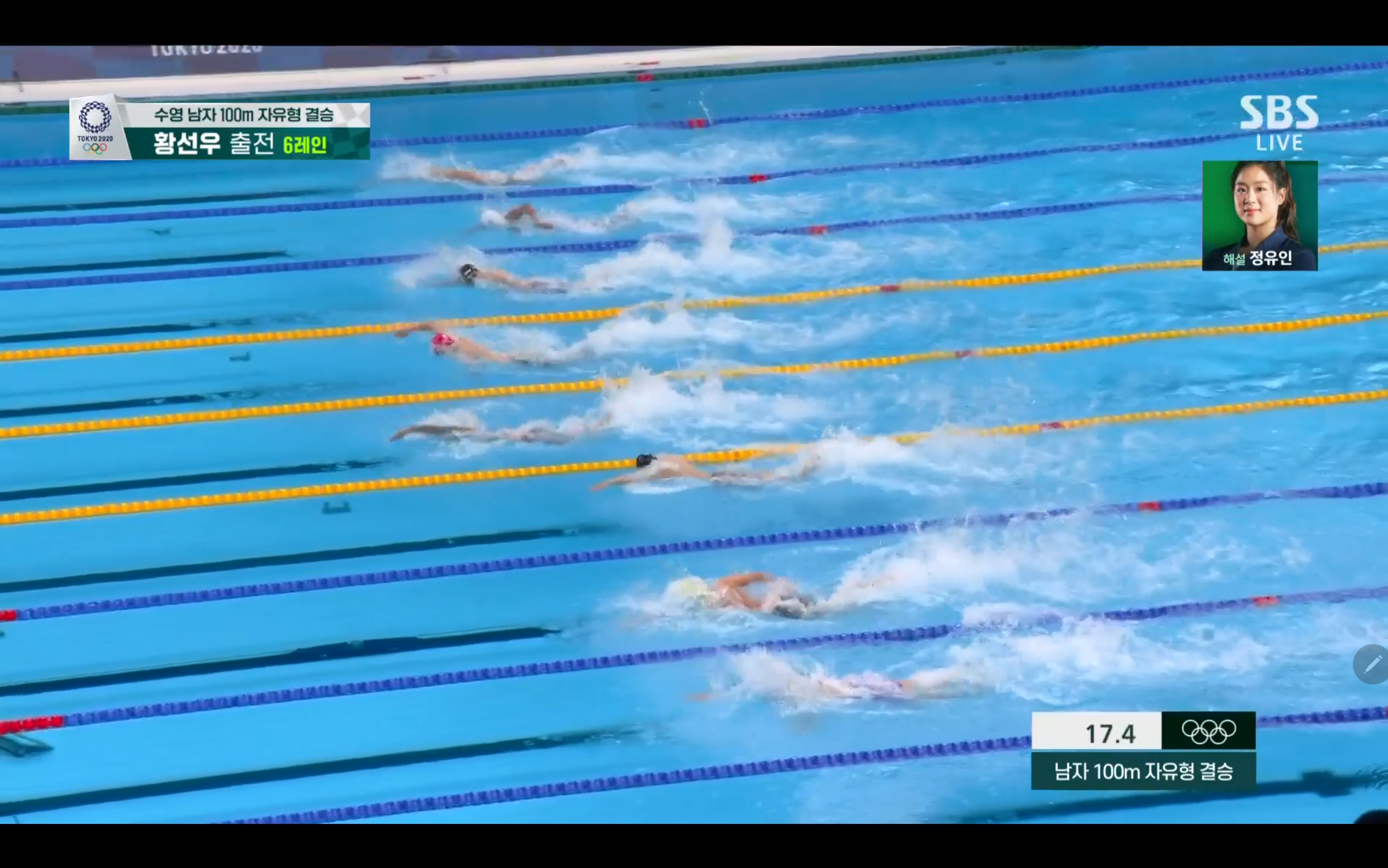 황선우 수영 남자 100m 자유형 결승 경기장면