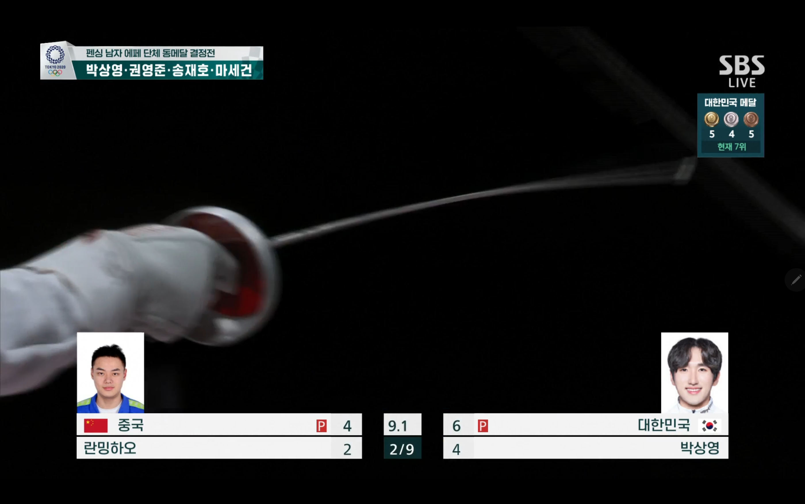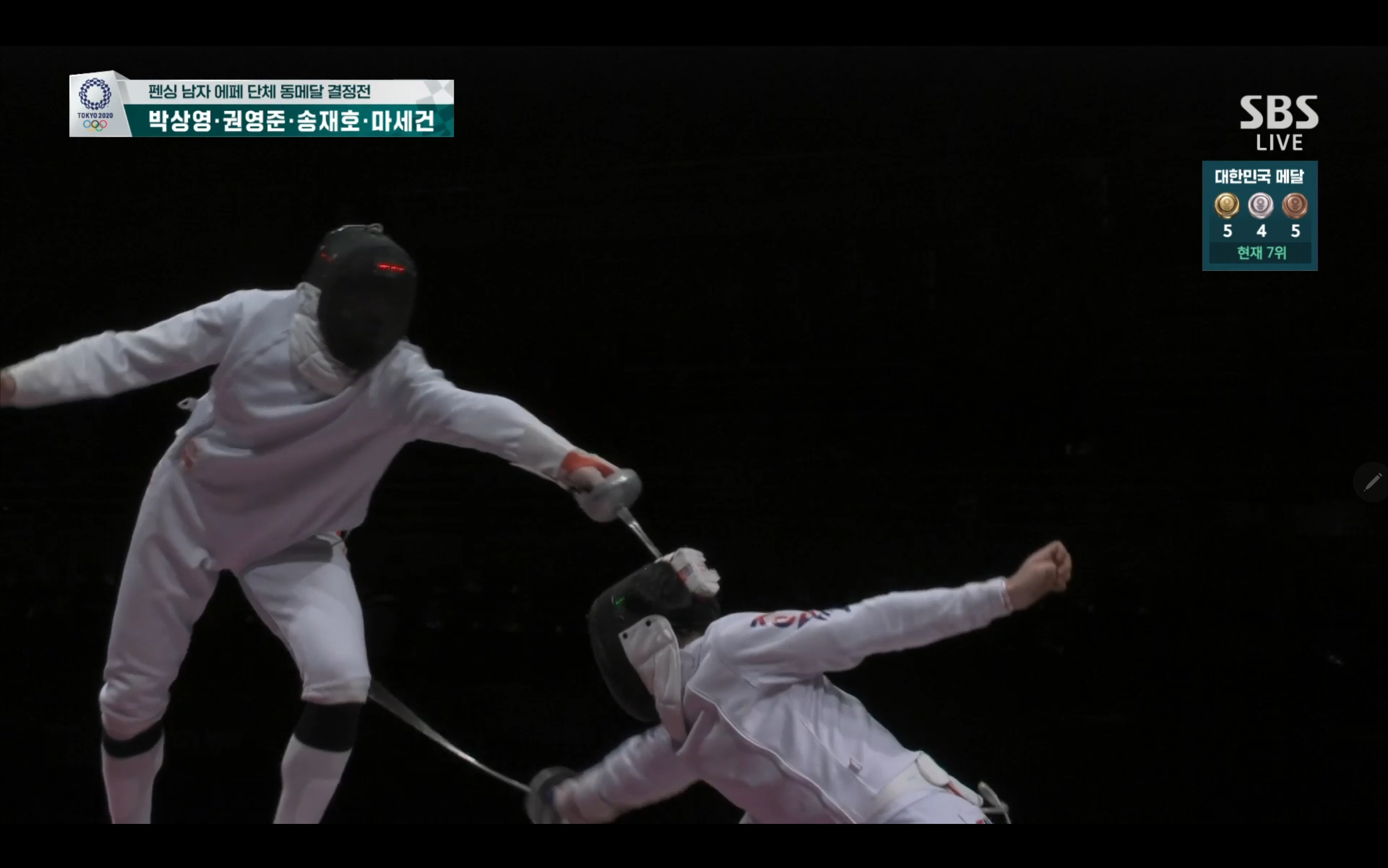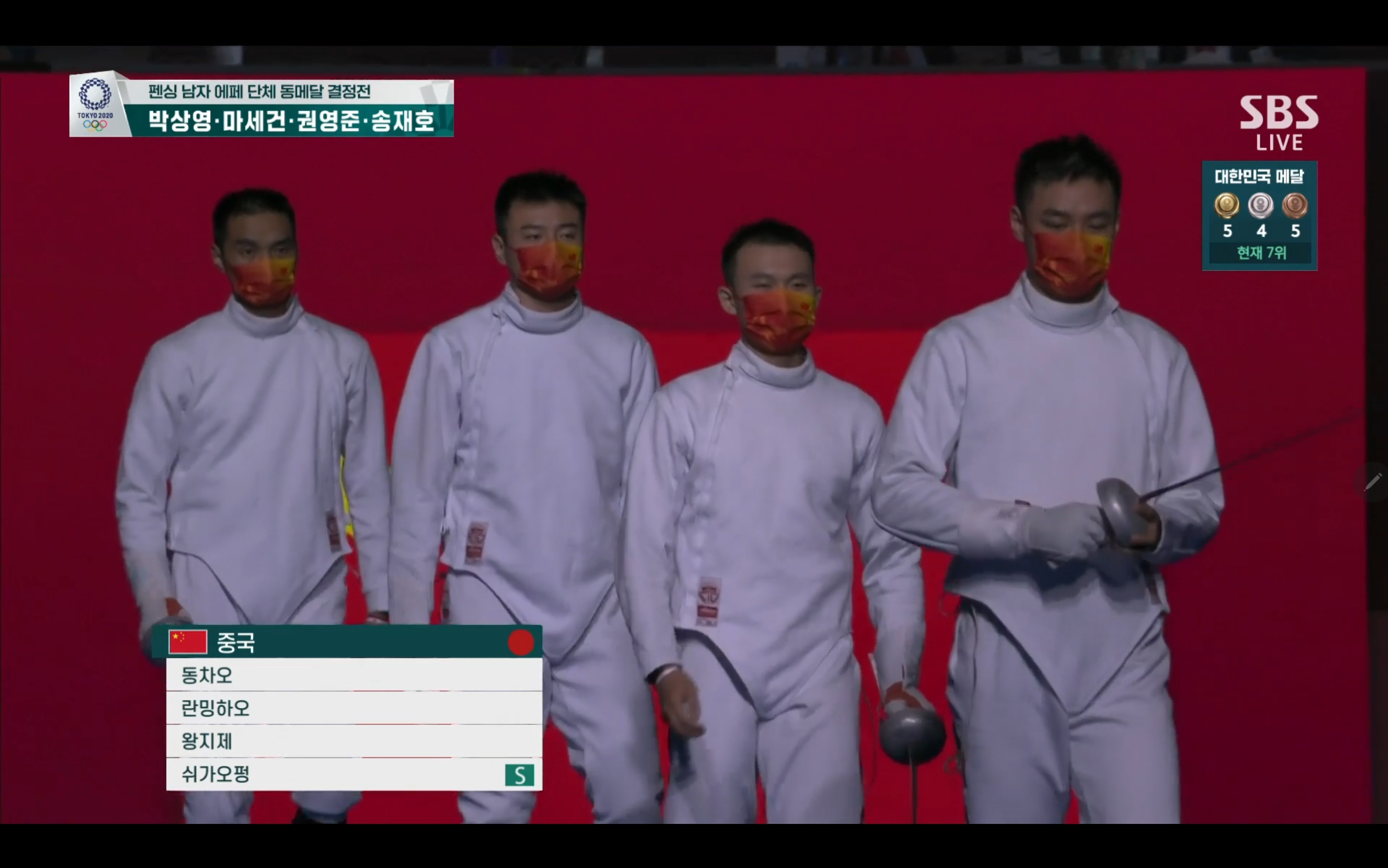 펜싱 남자 에페 단체 동메달 결정전 과연 동메달을 손에 쥘 수 있을까요? 경기장면 보는 내내 떨립니다.