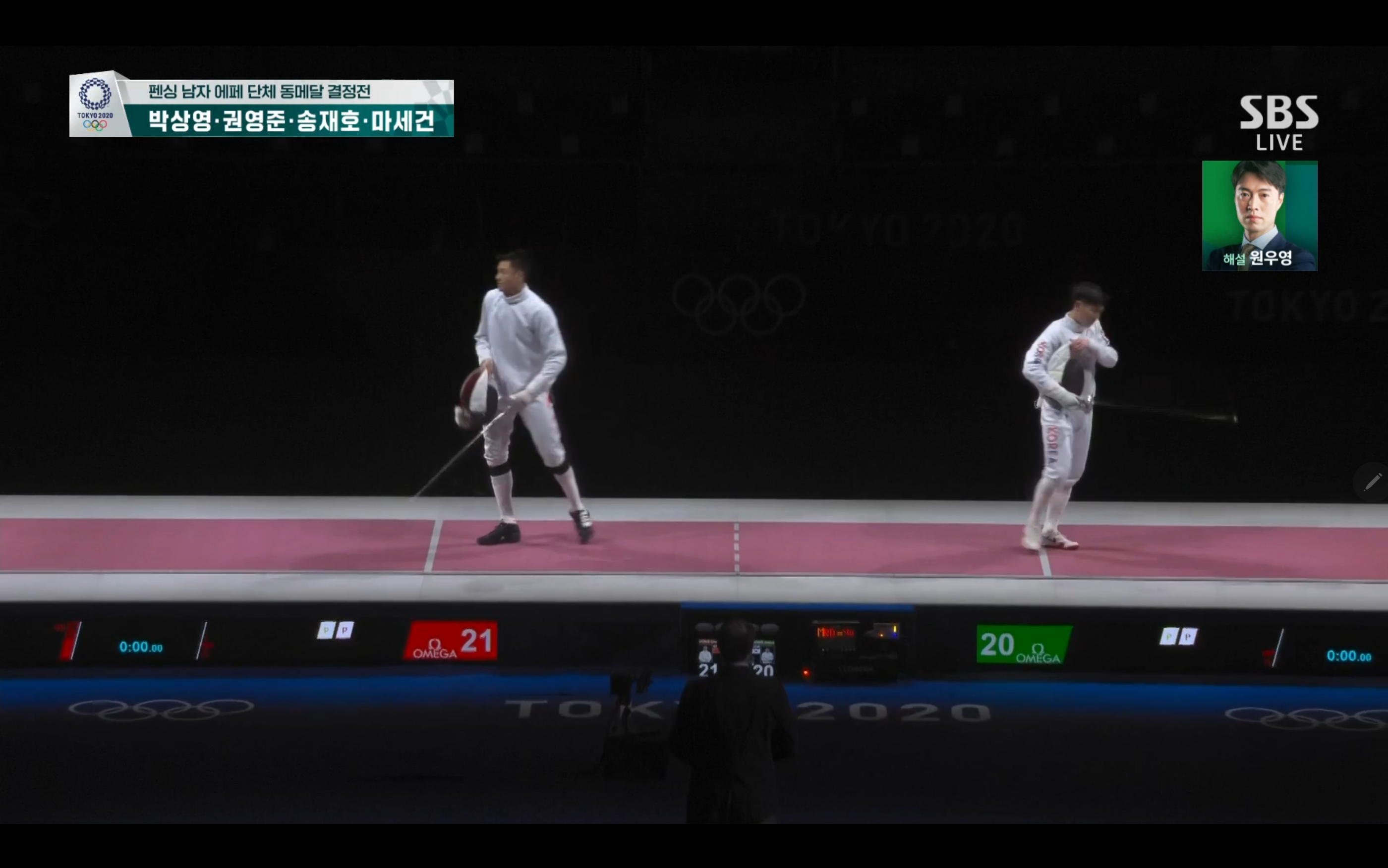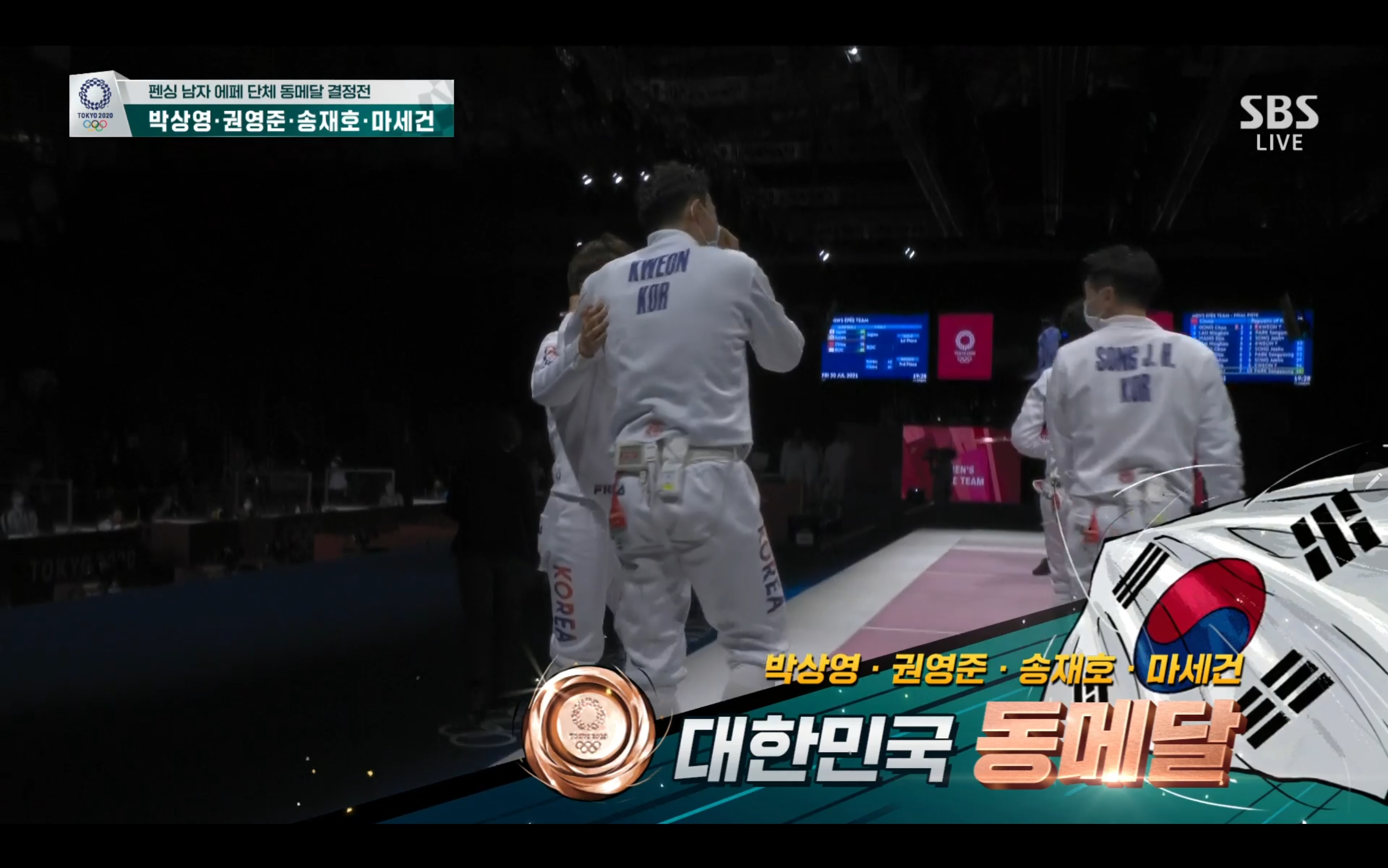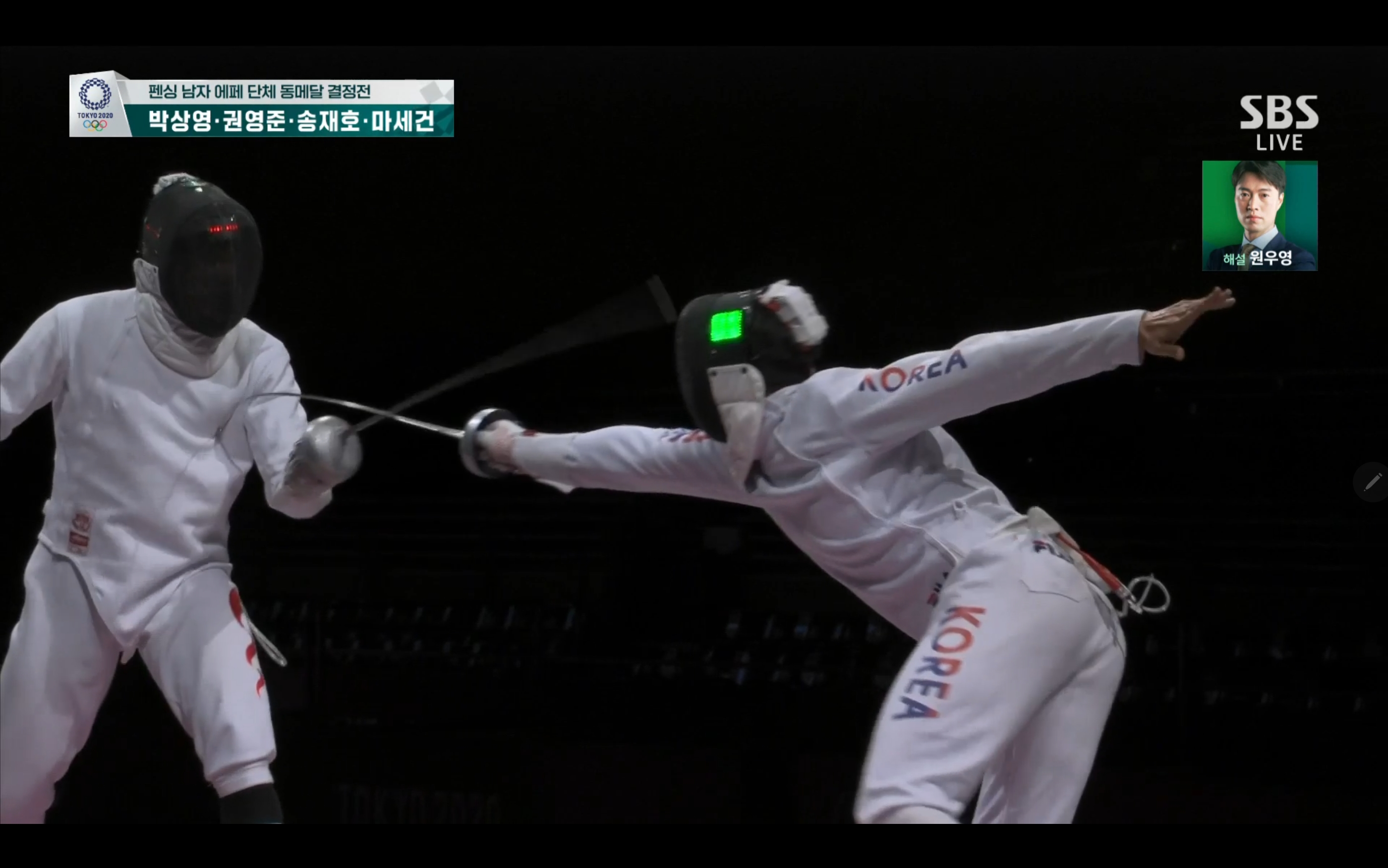 펜싱 남자 에페 단체 동메달 결정전 과연 동메달을 손에 쥘 수 있을까요? 경기장면 보는 내내 떨립니다.