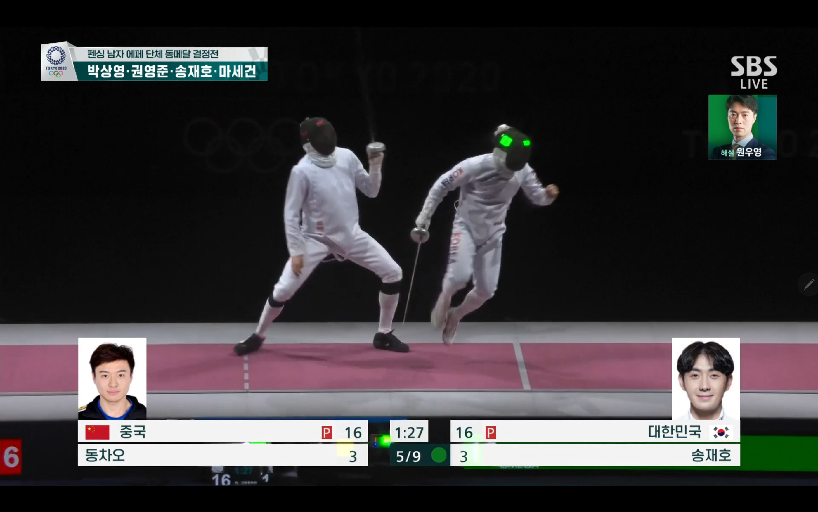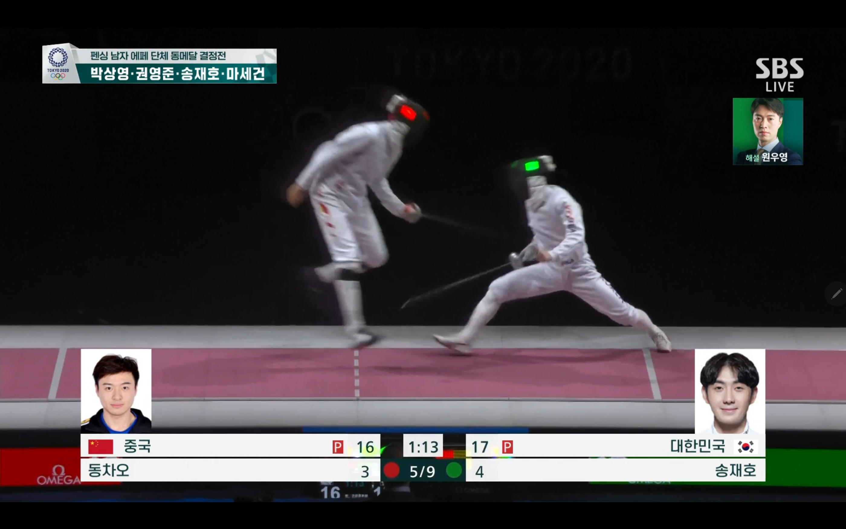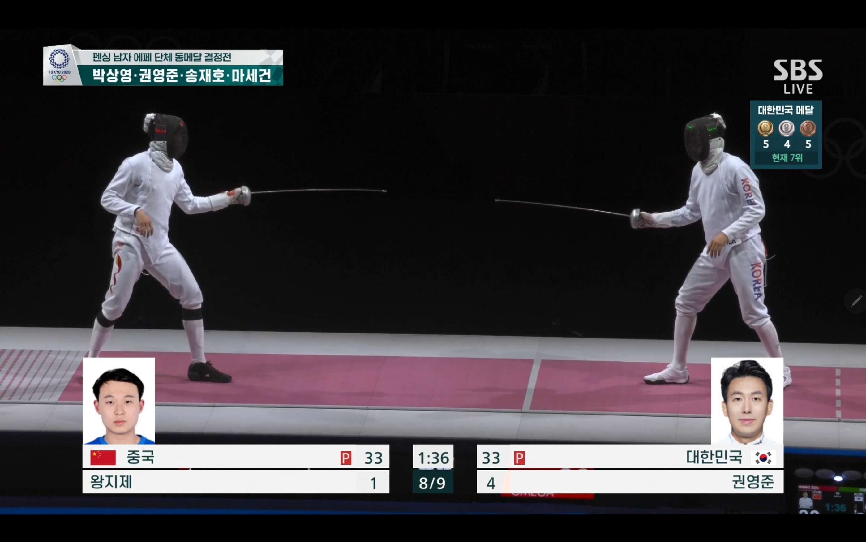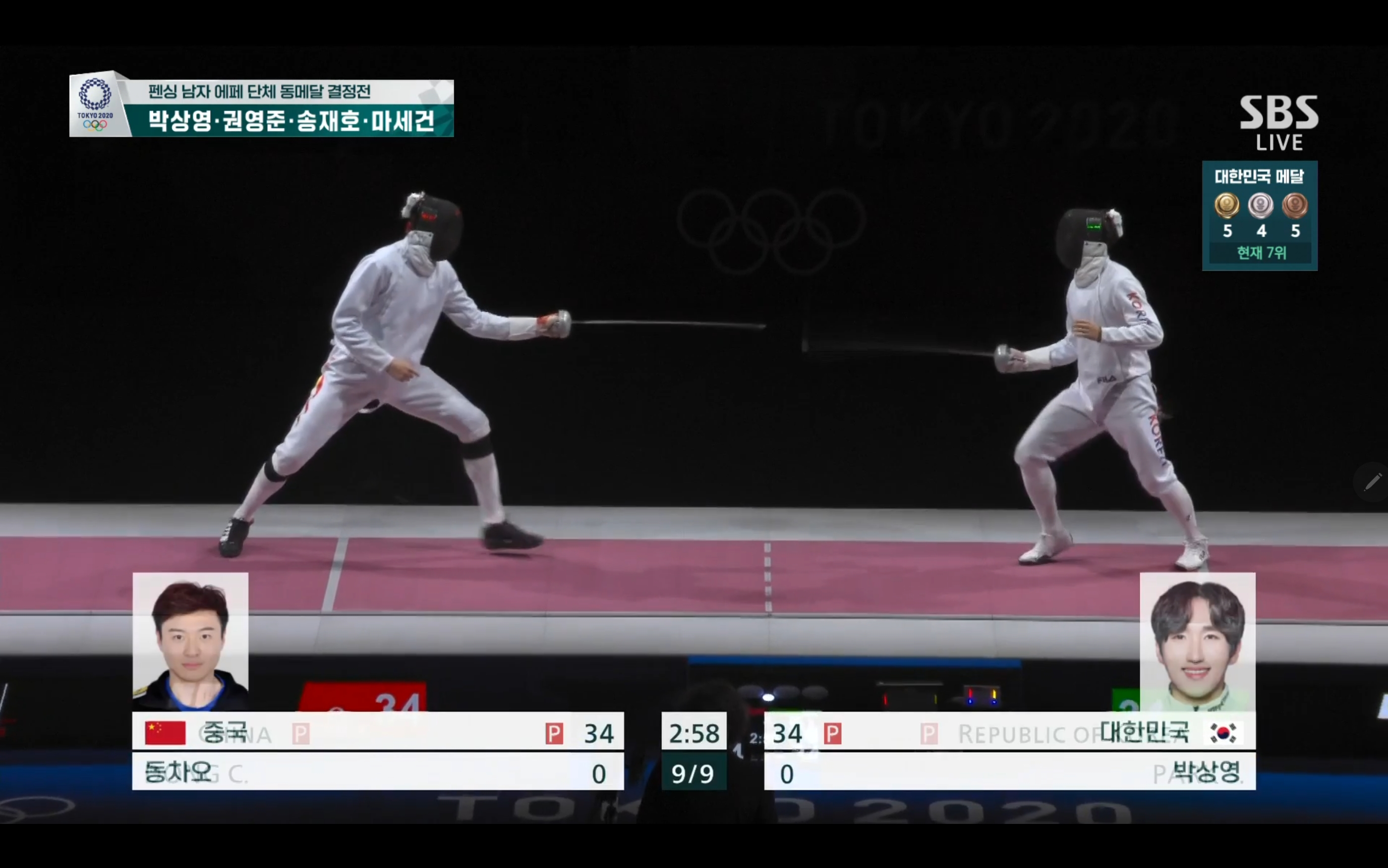 펜싱 남자 에페 단체 동메달 획득!! 대한민국 대 중국 +경기장면 첨부