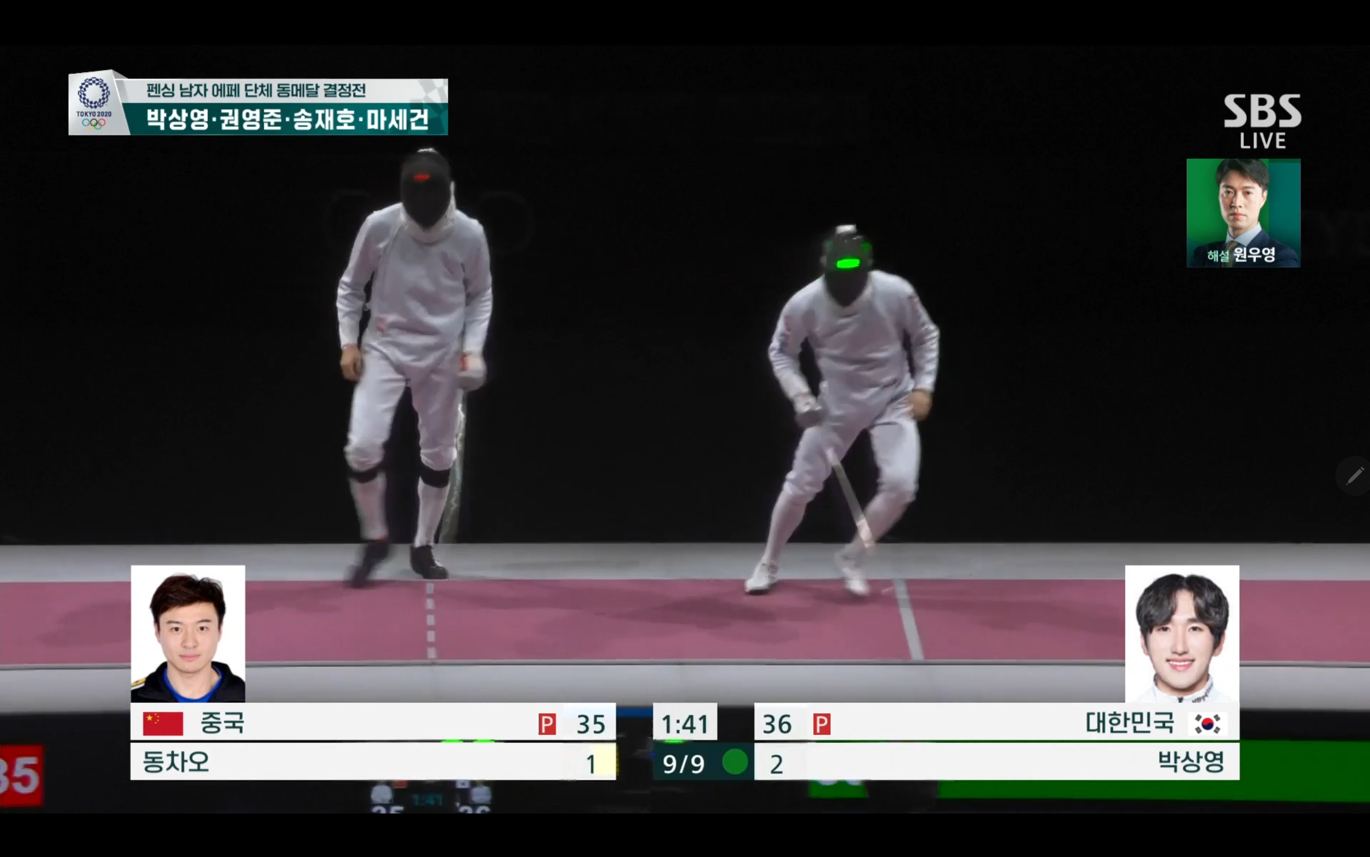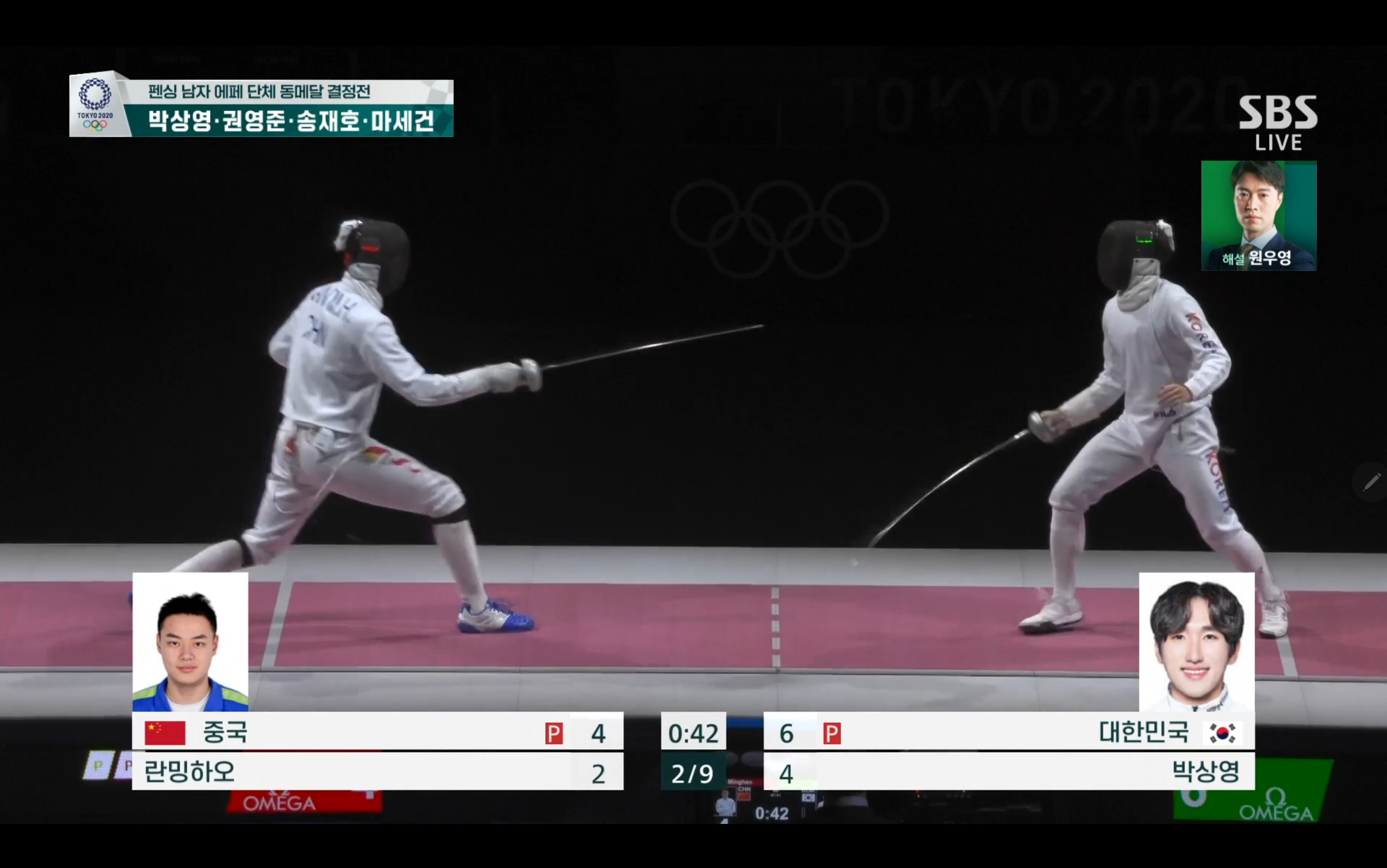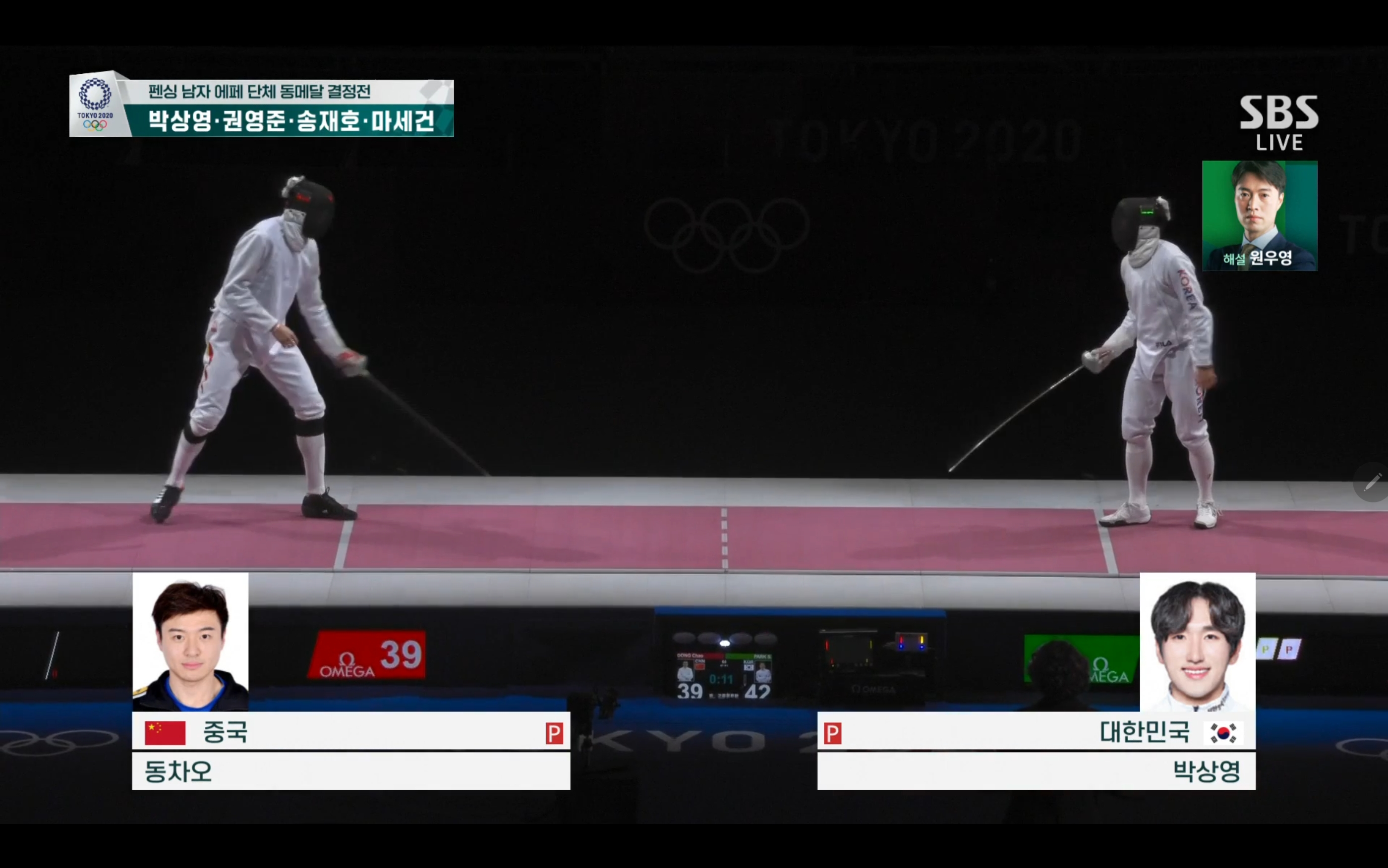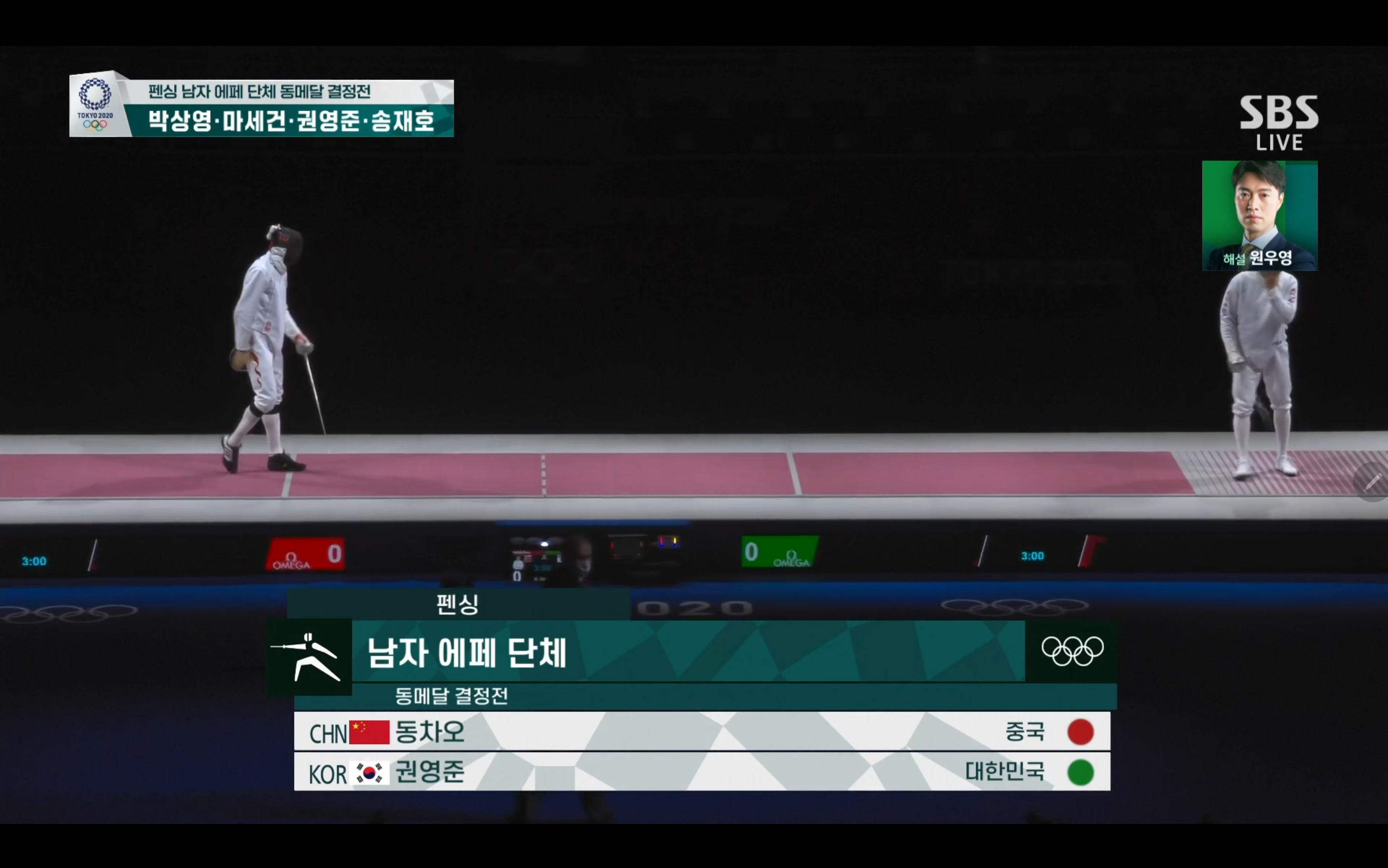이번 펜싱 남자 에페 단체 동메달 결정전에서는 대한민국 대 중국의 경기가 될텐데요.