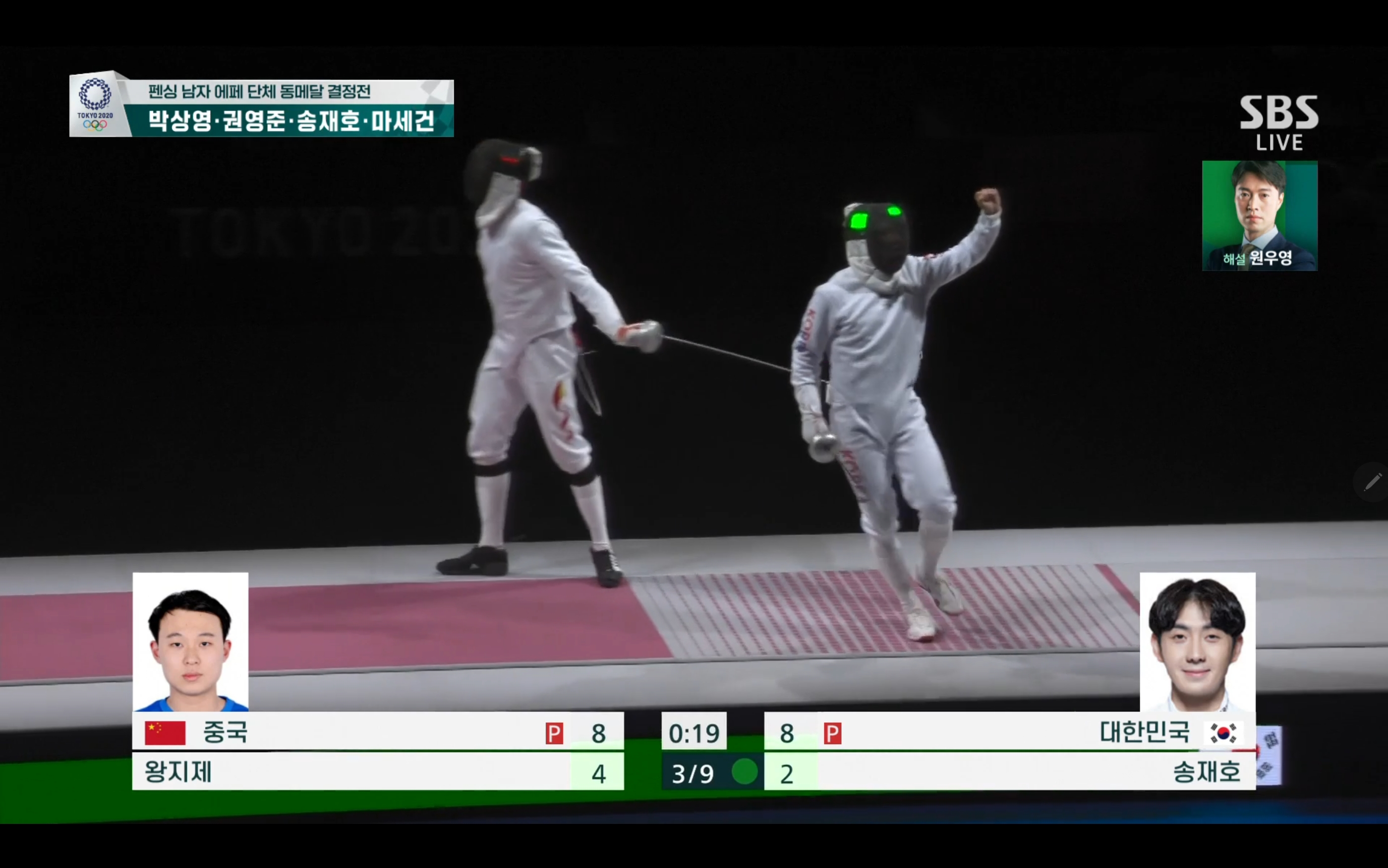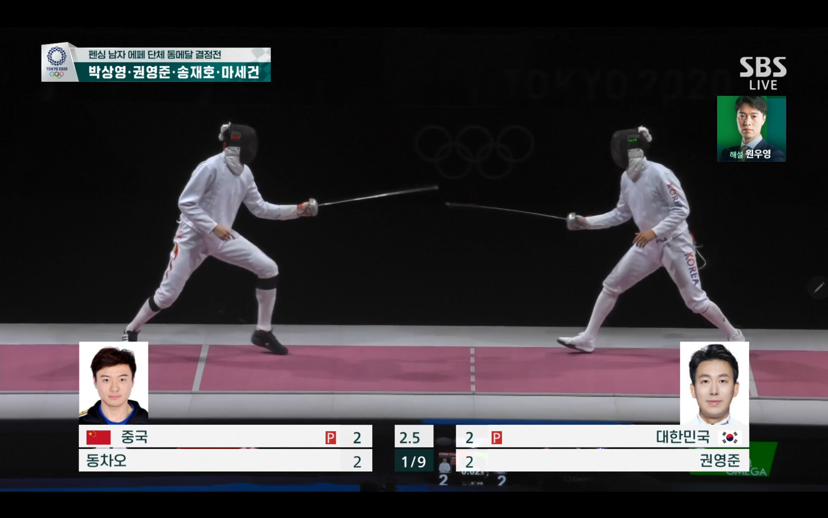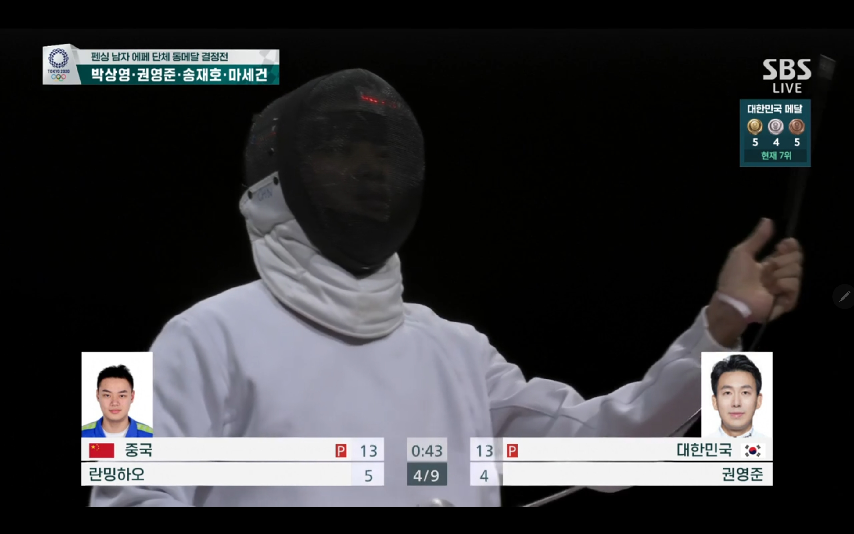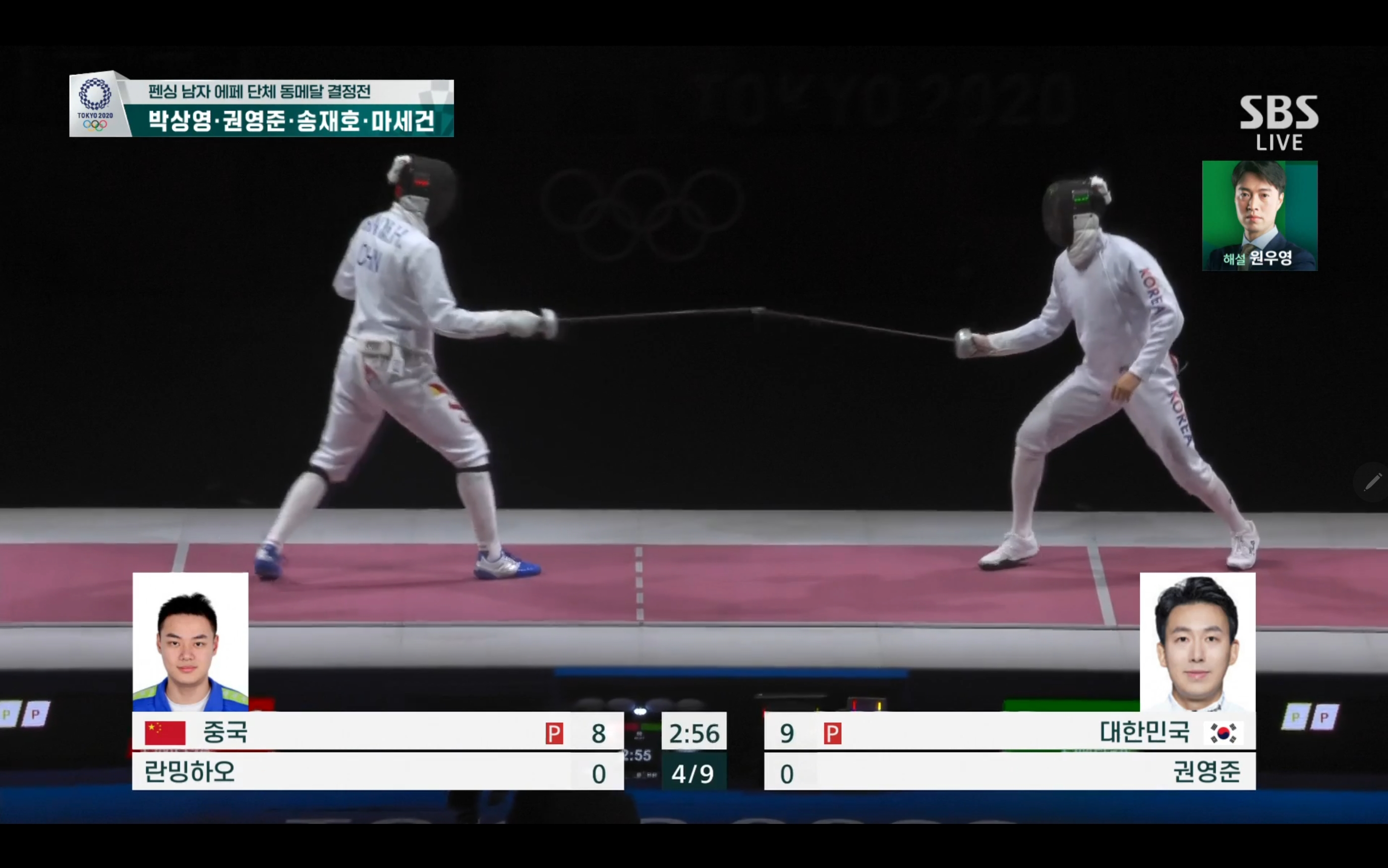 이번 펜싱 남자 에페 단체 동메달 결정전에서는 대한민국 대 중국의 경기가 될텐데요.