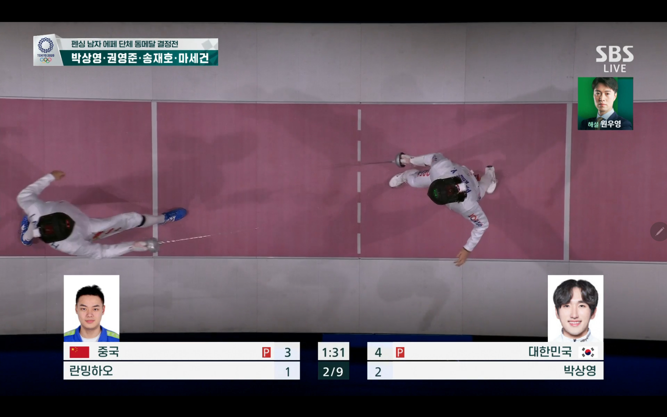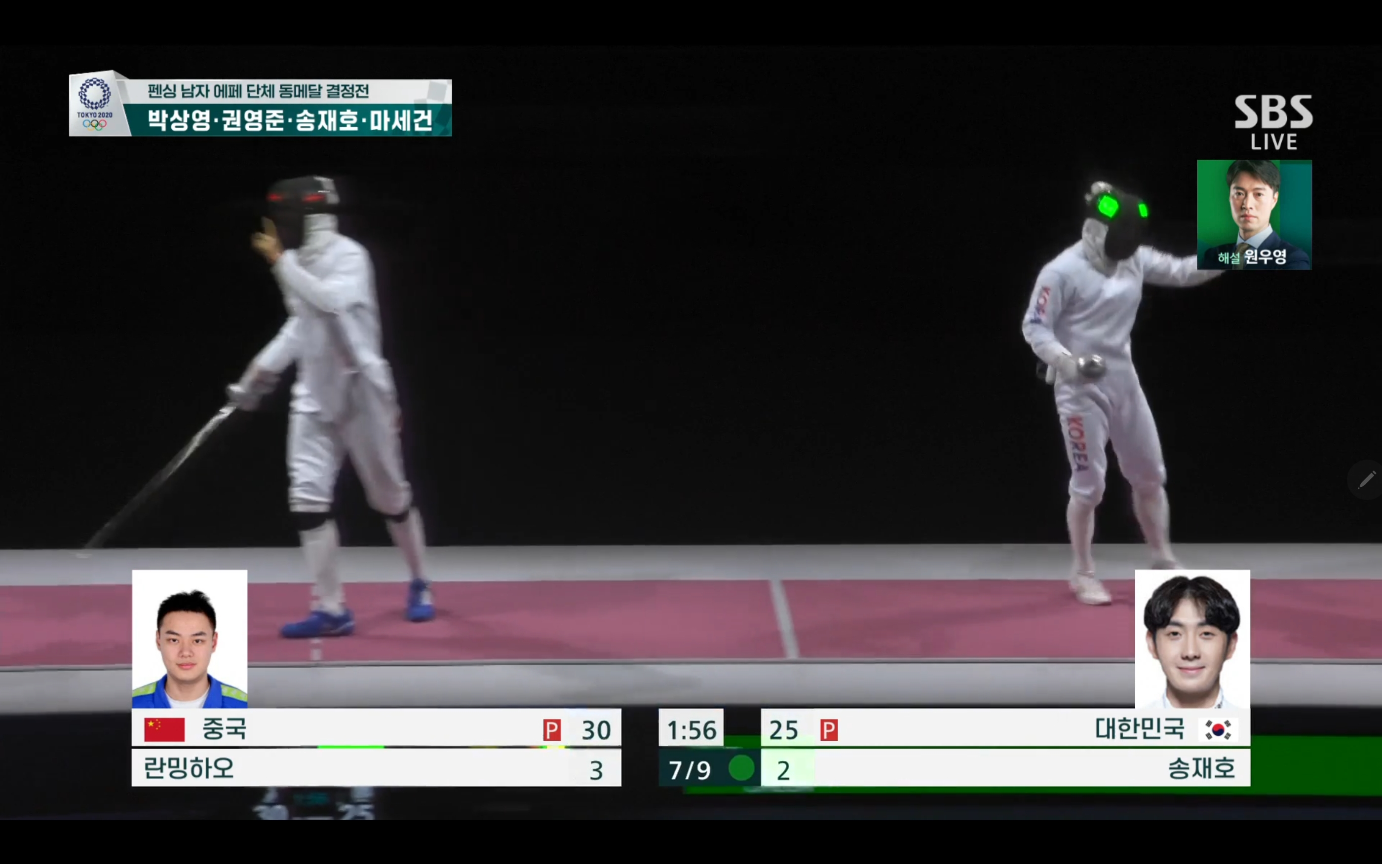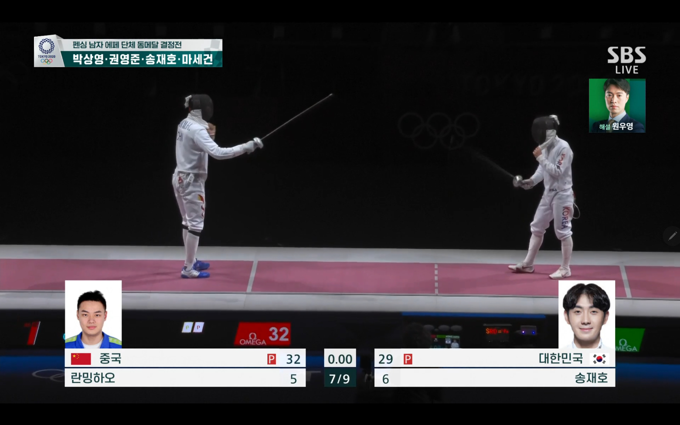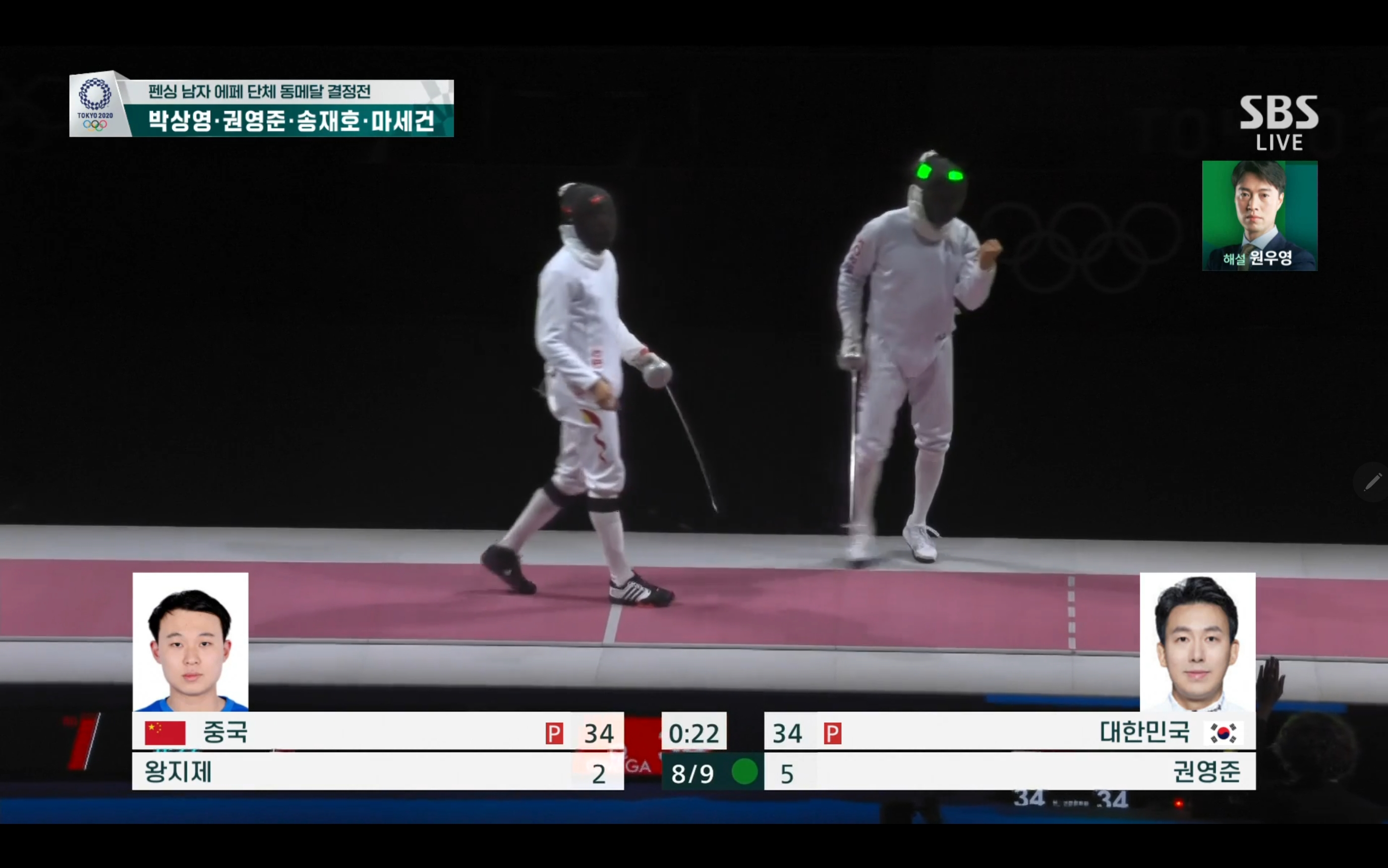 이번 펜싱 남자 에페 단체 동메달 결정전에서는 대한민국 대 중국의 경기가 될텐데요.