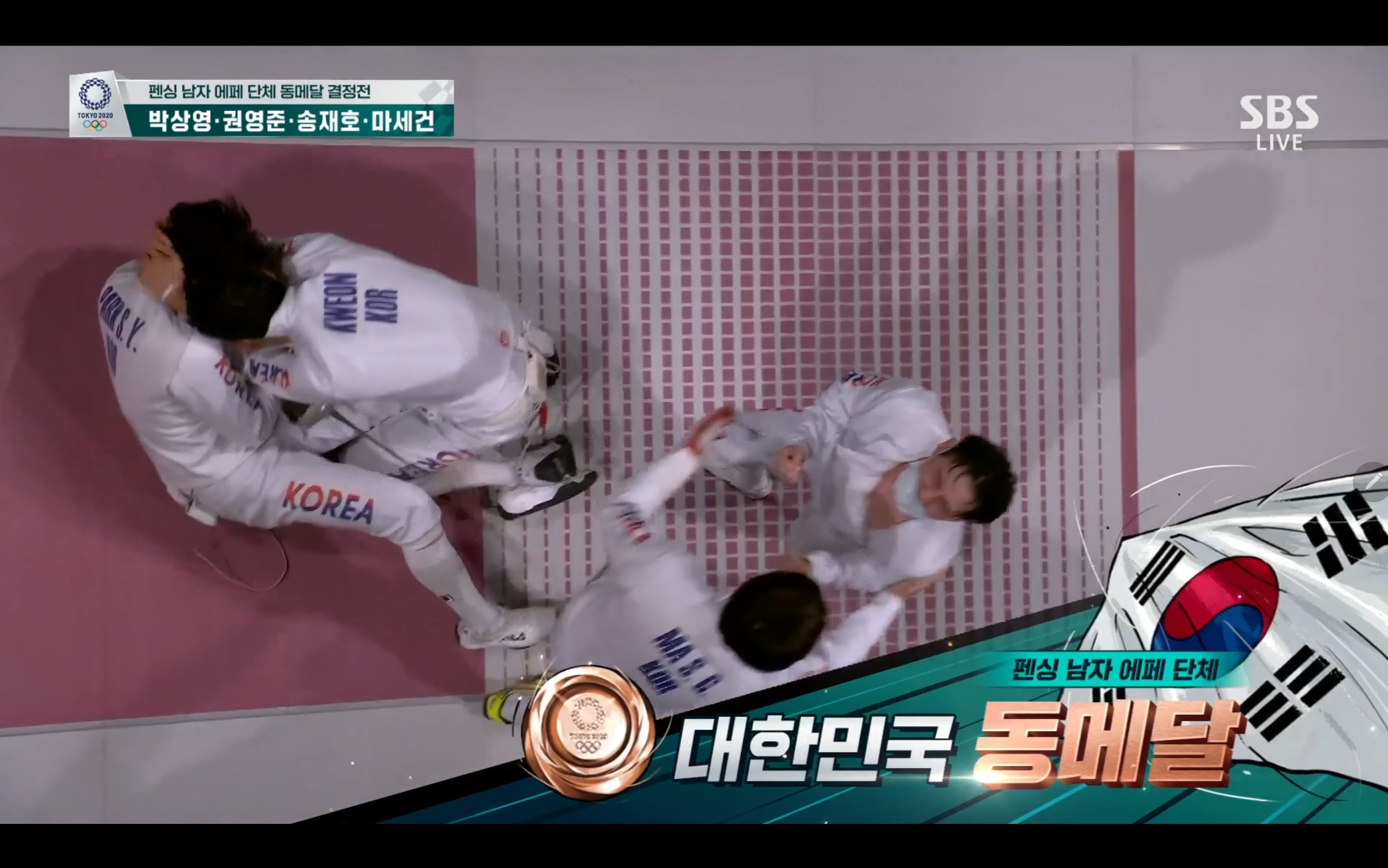 우리나라 선수들 펜싱 남자 에페 단체 동메달 결정전! 동메달 획득입니다.