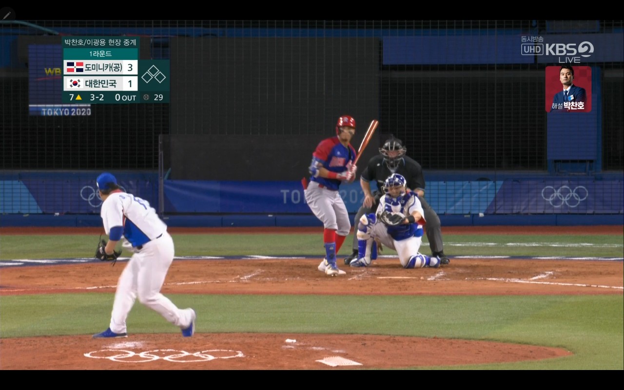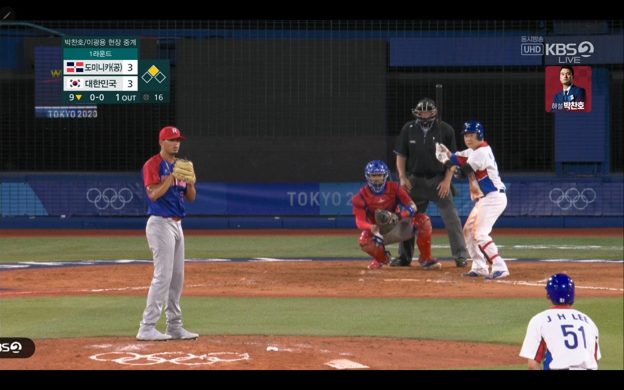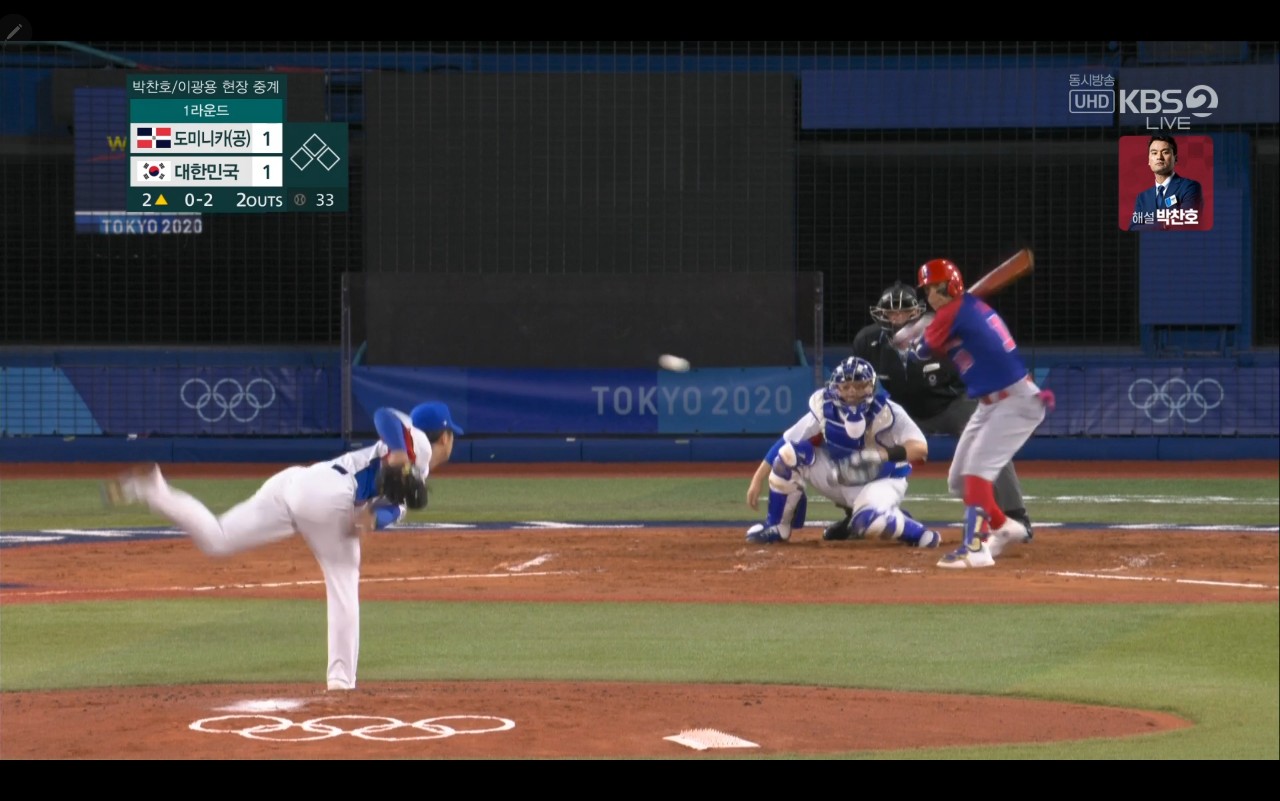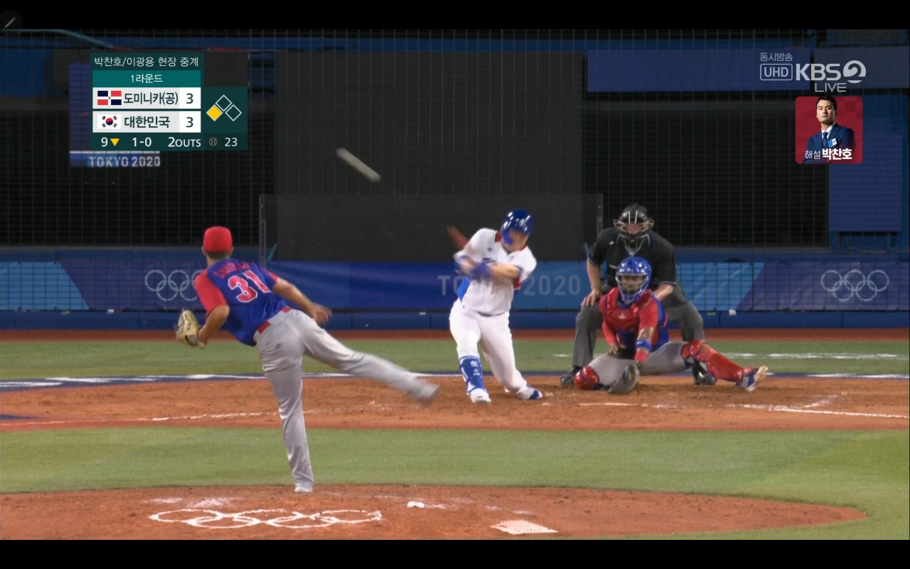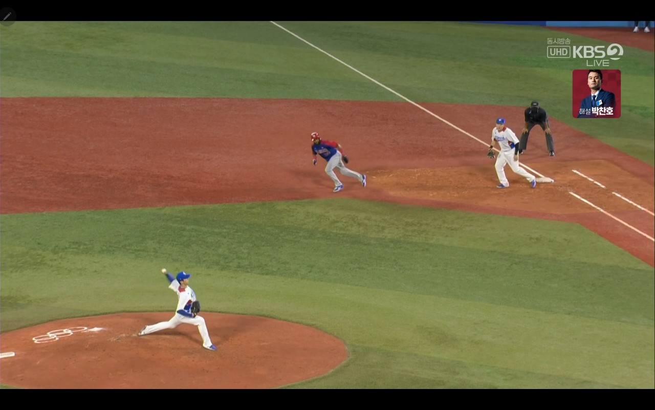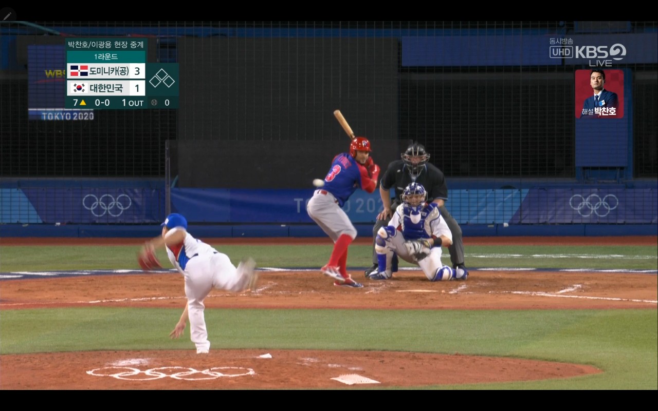 올림픽 야구 대한민국 대 도미니카(공) 경기장면