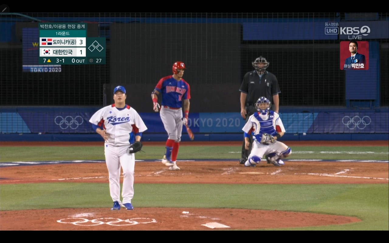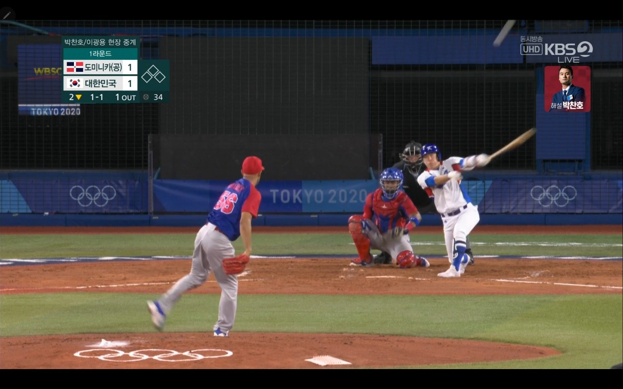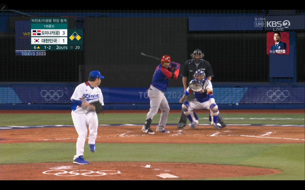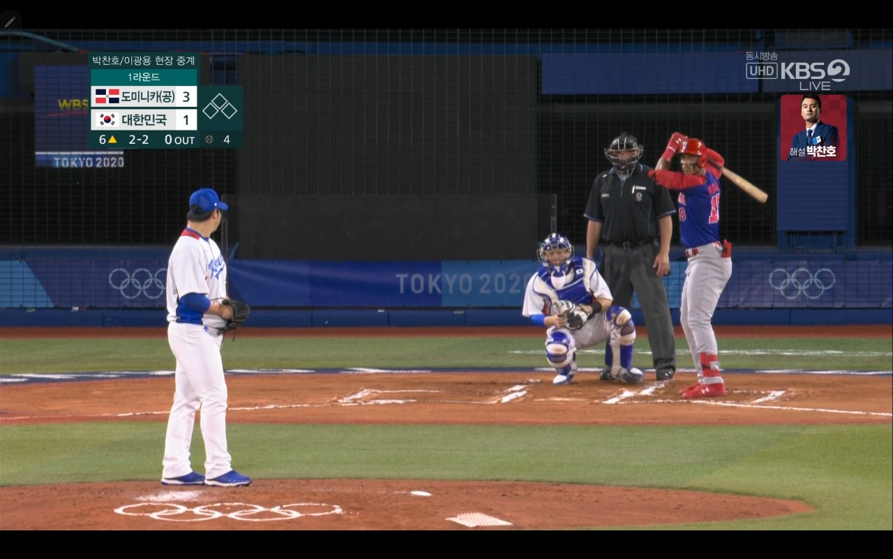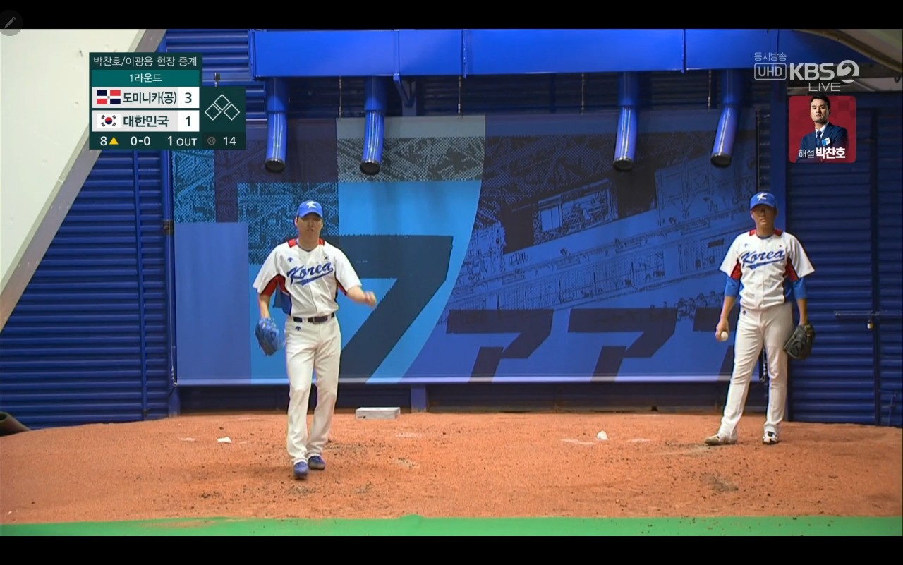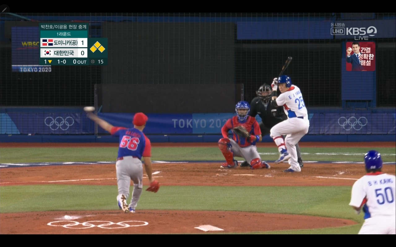 올림픽 야구 대한민국 대 도미니카(공) 경기장면