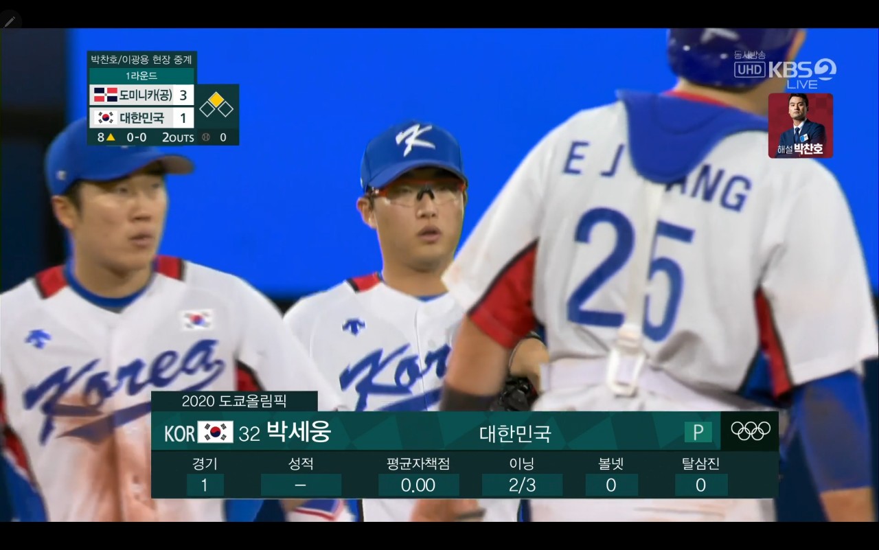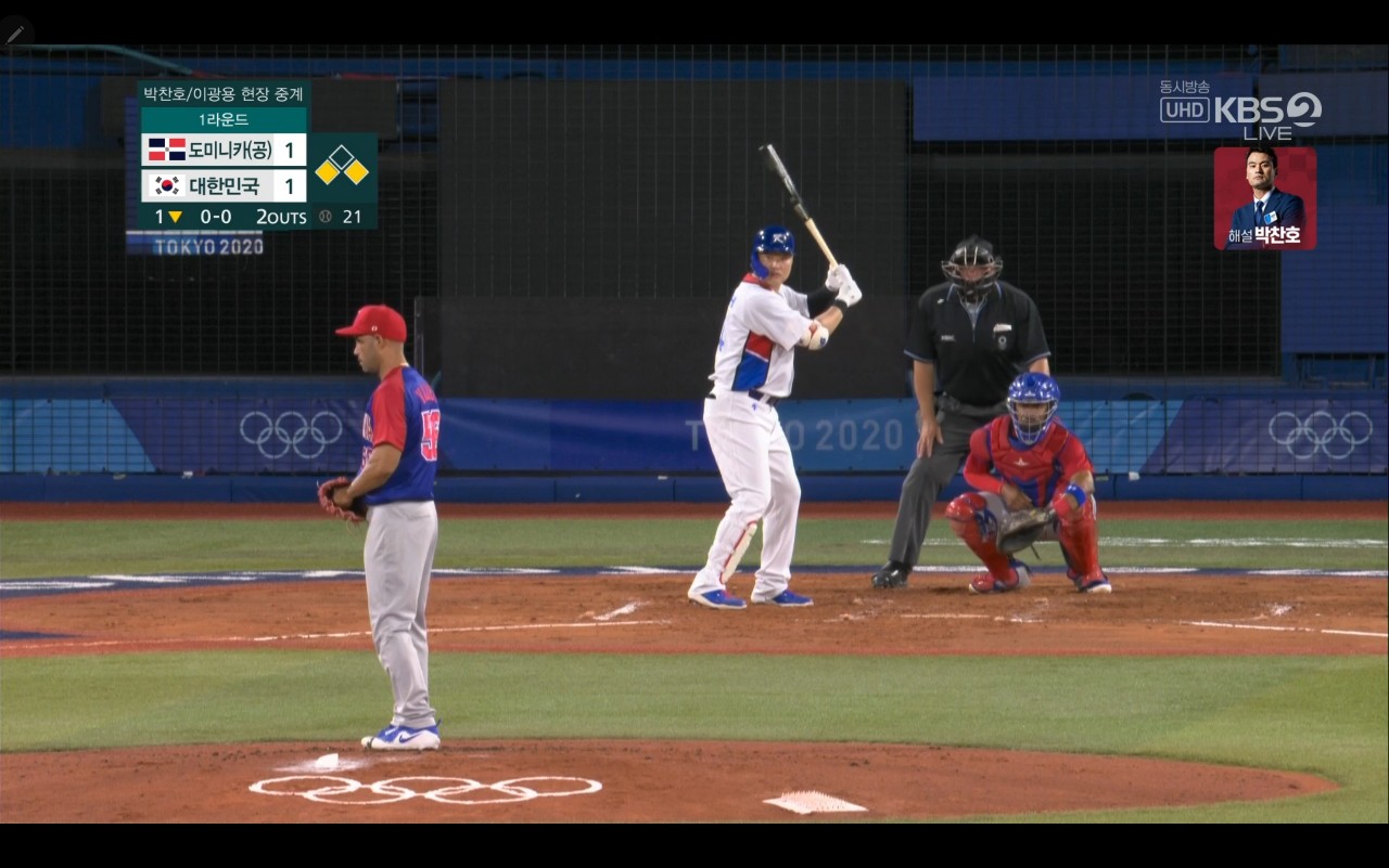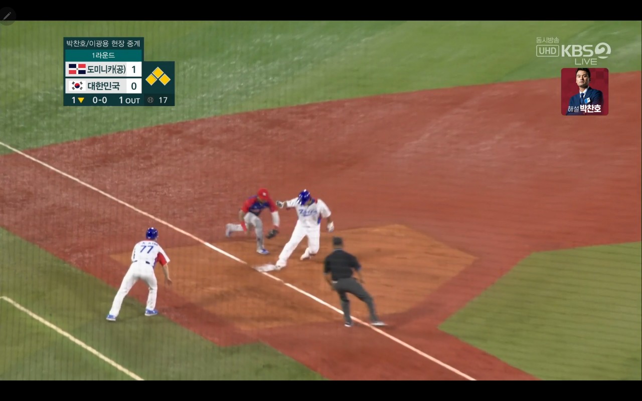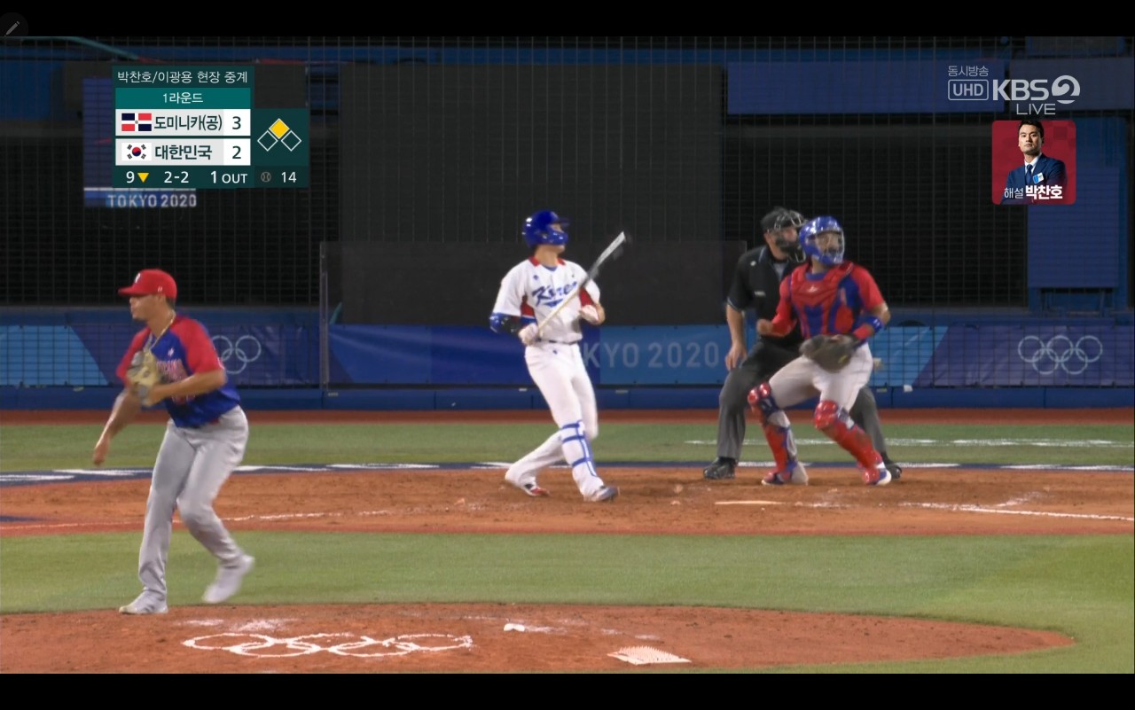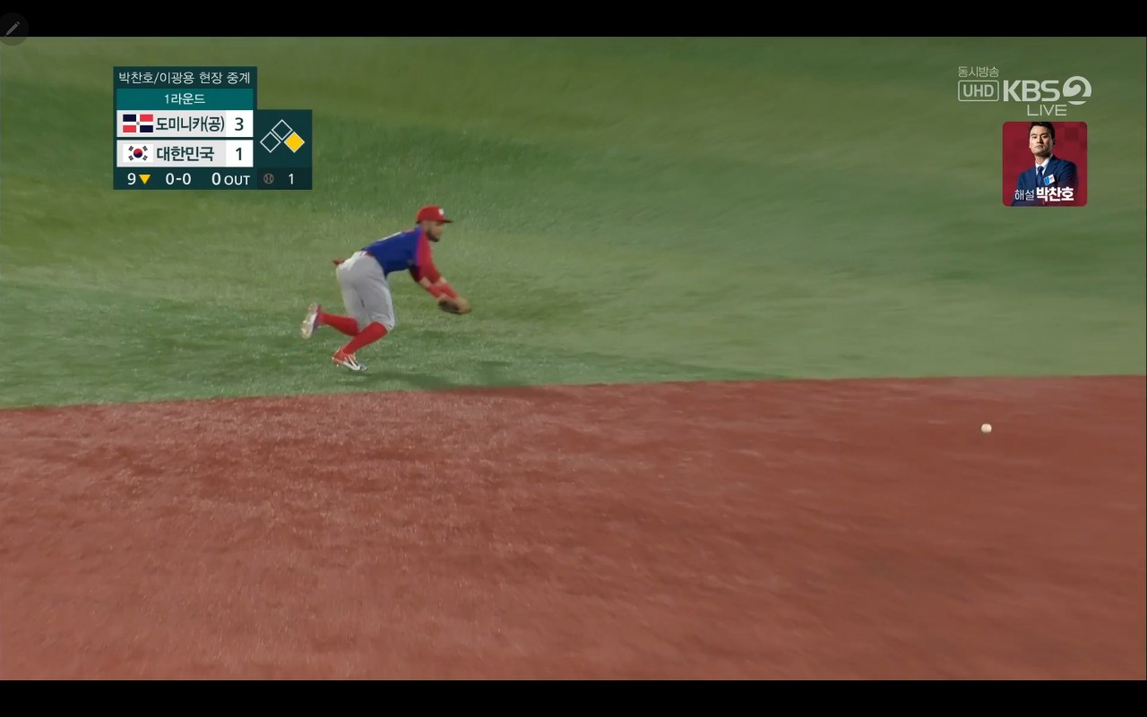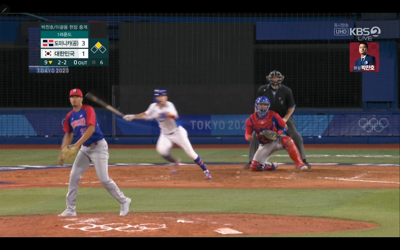 올림픽 야구 대한민국 대 도미니카(공) 경기장면