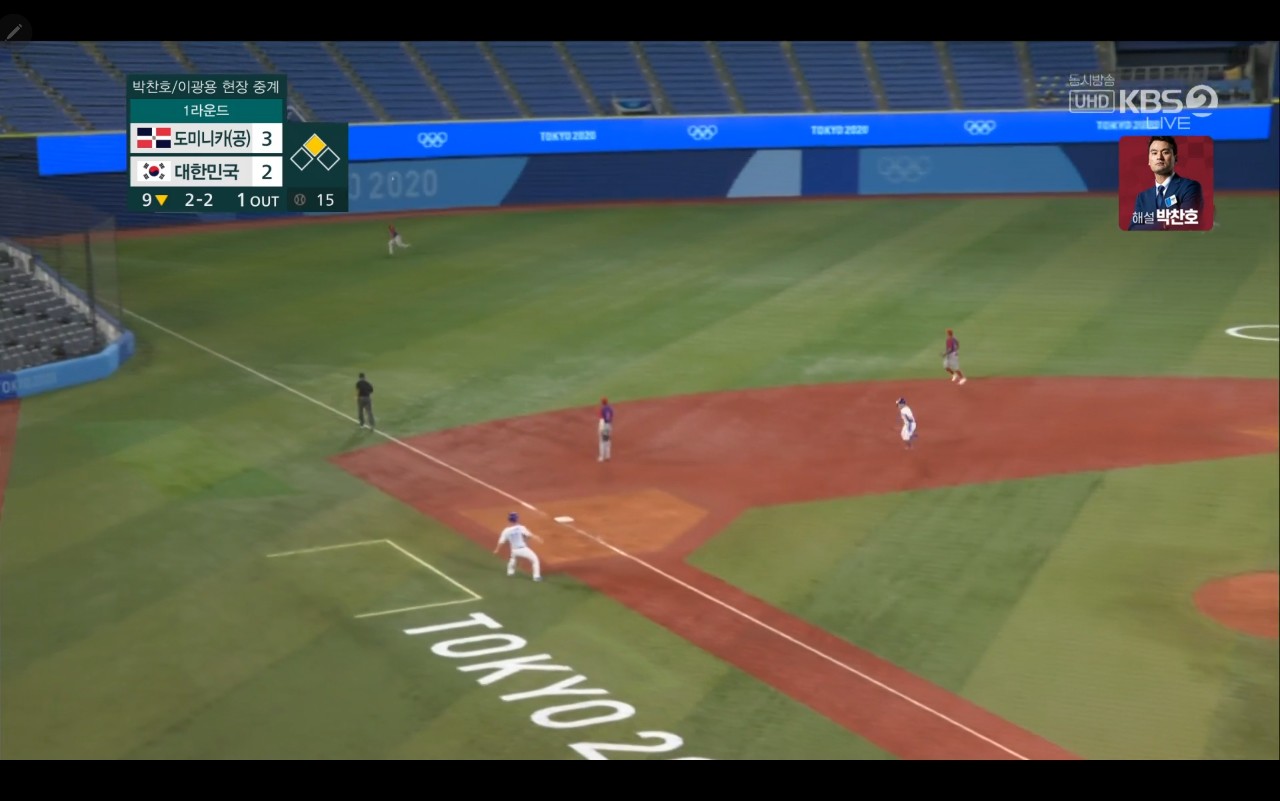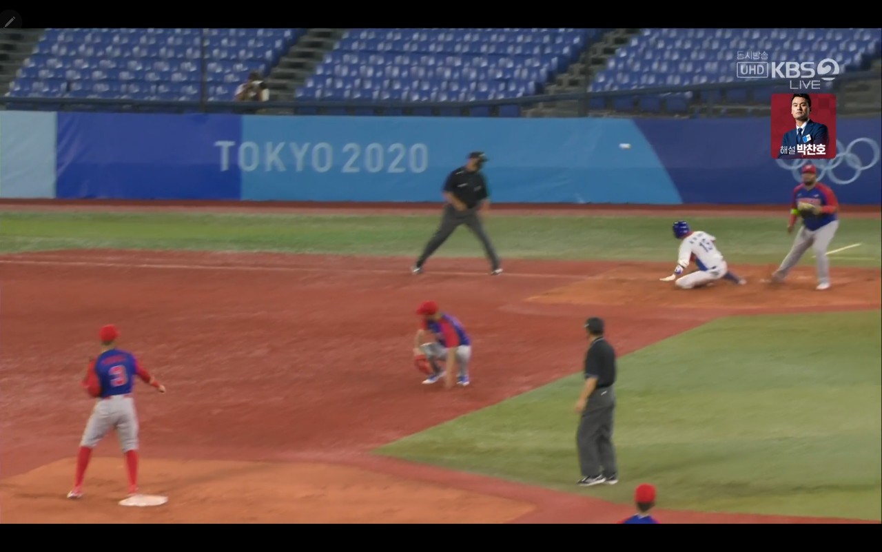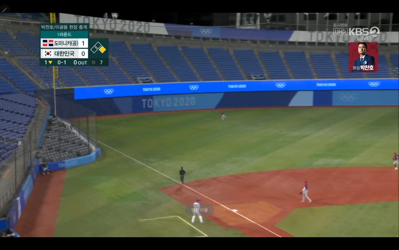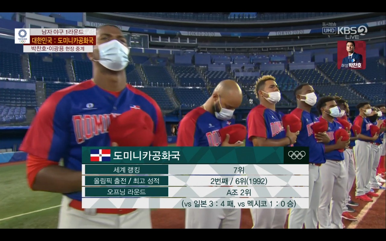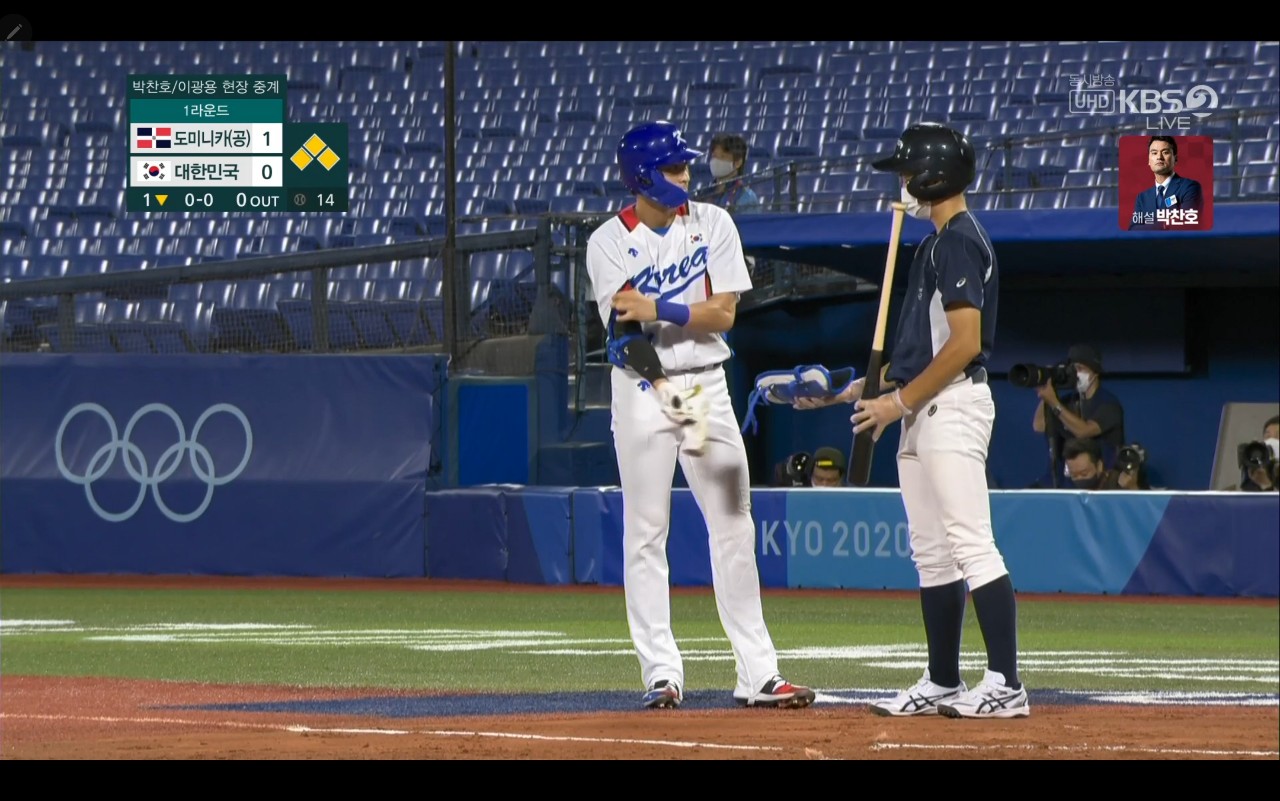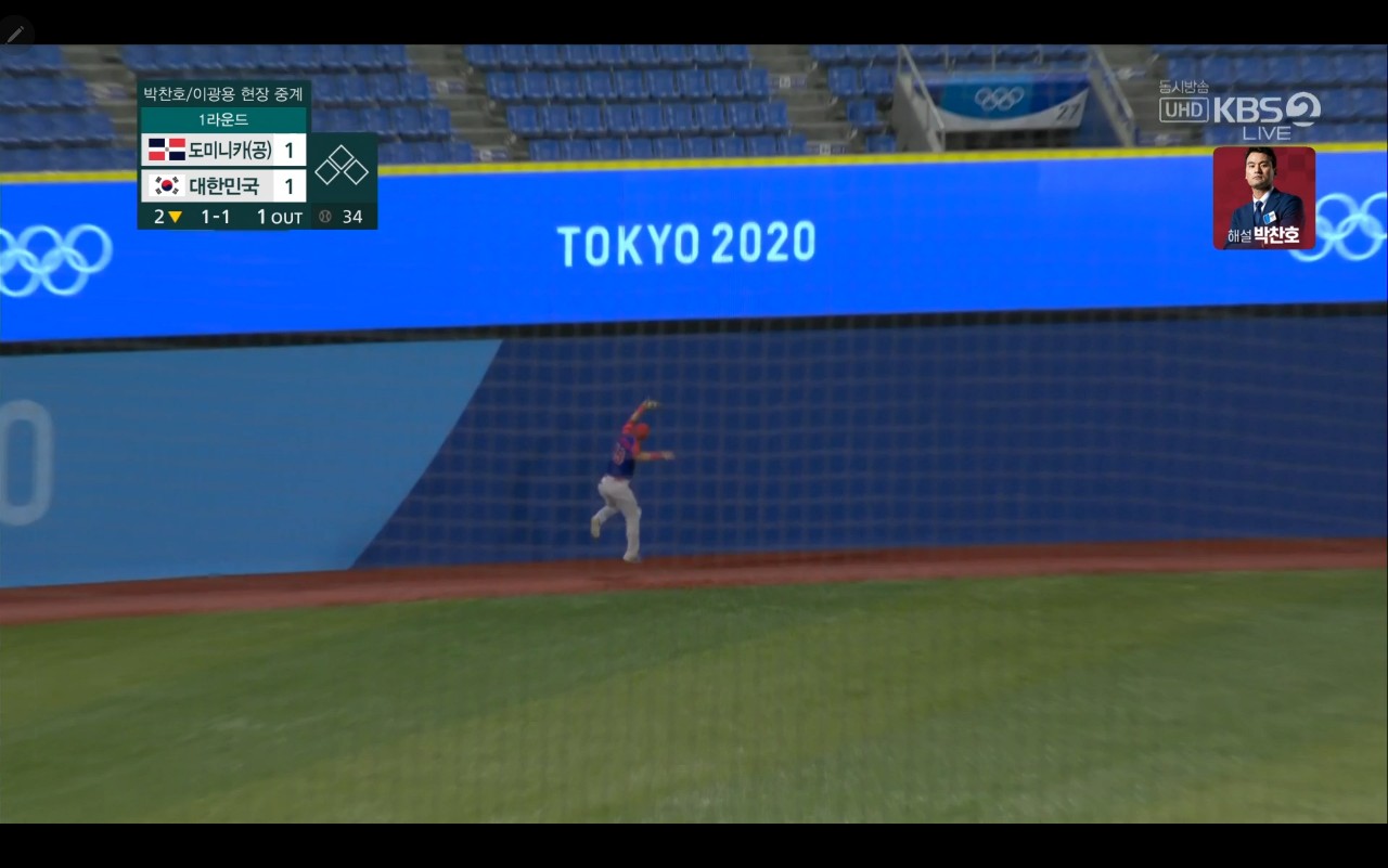 올림픽 야구 대한민국 대 도미니카(공) 경기장면