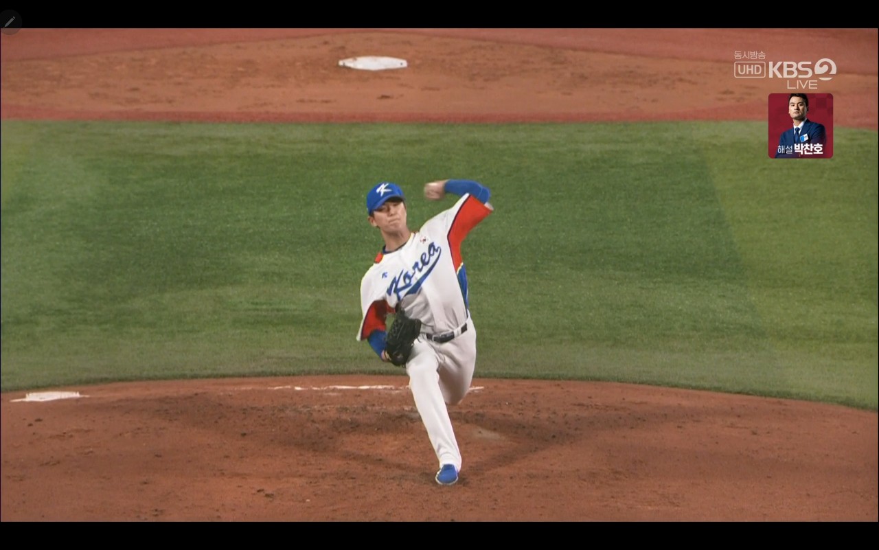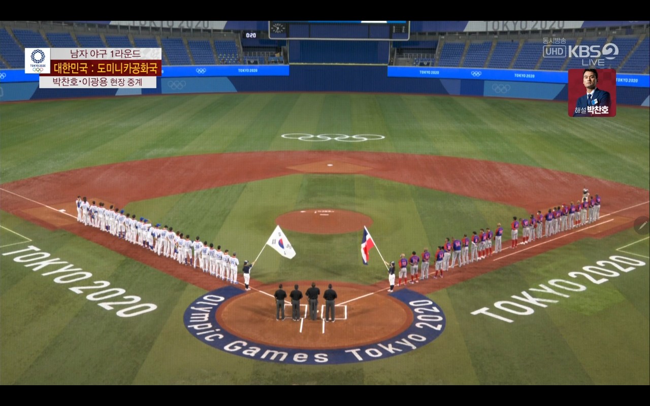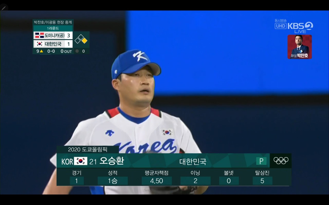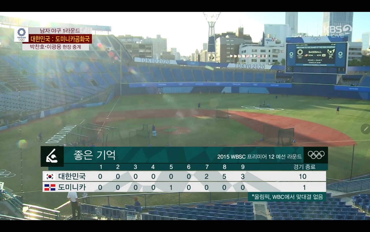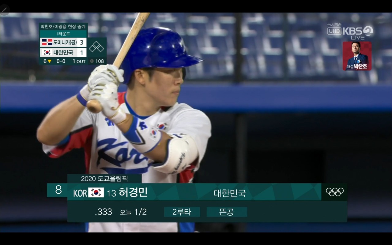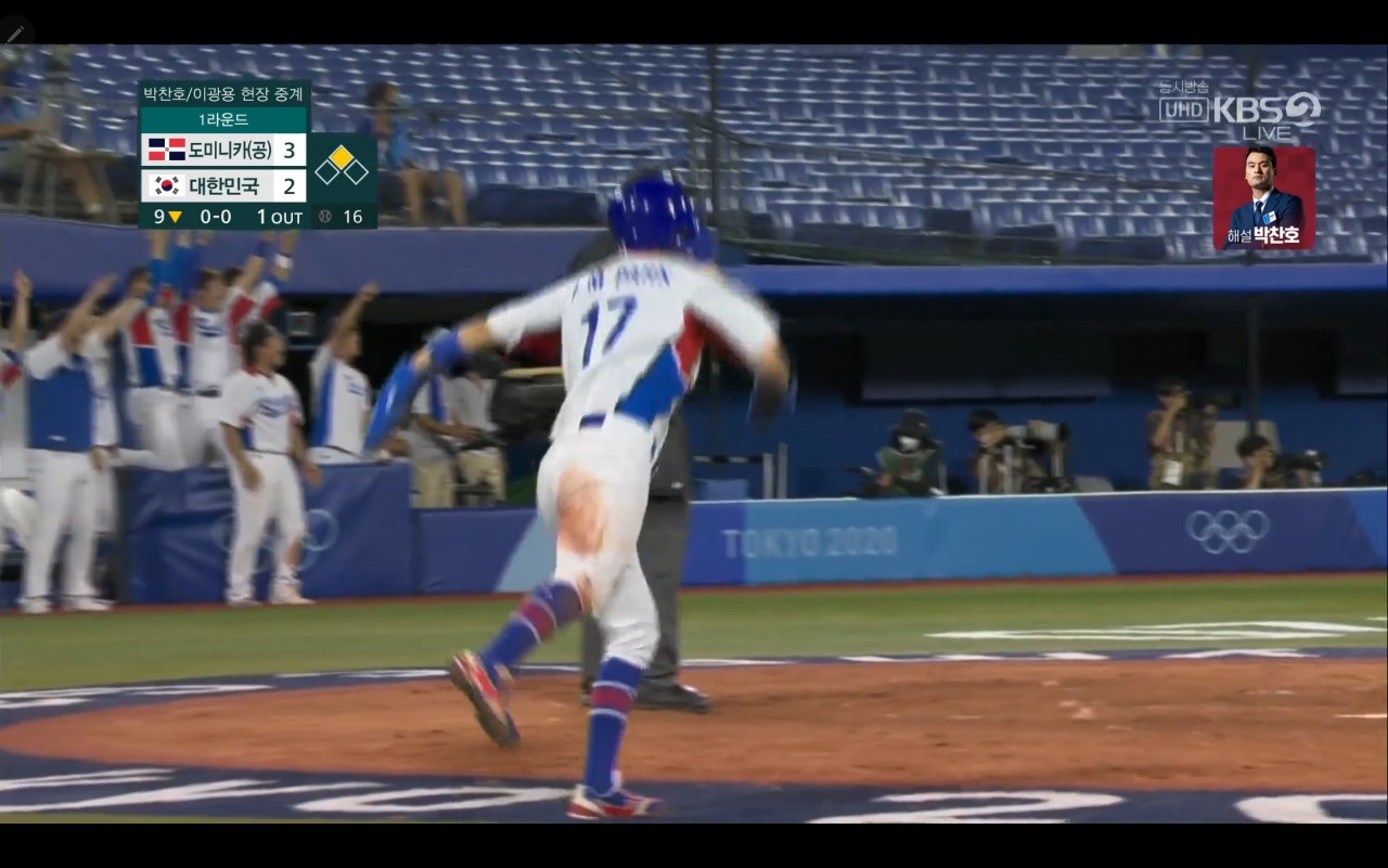 올림픽 야구 대한민국 대 도미니카(공) 경기장면
