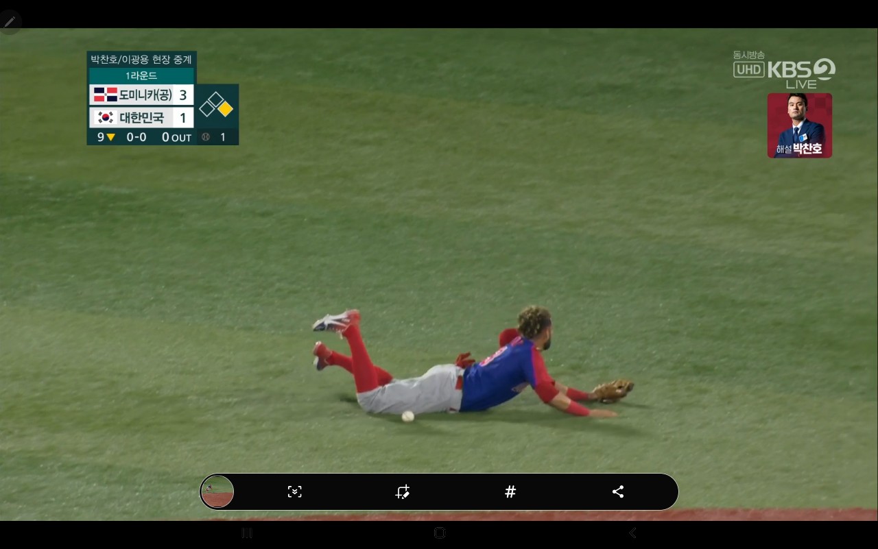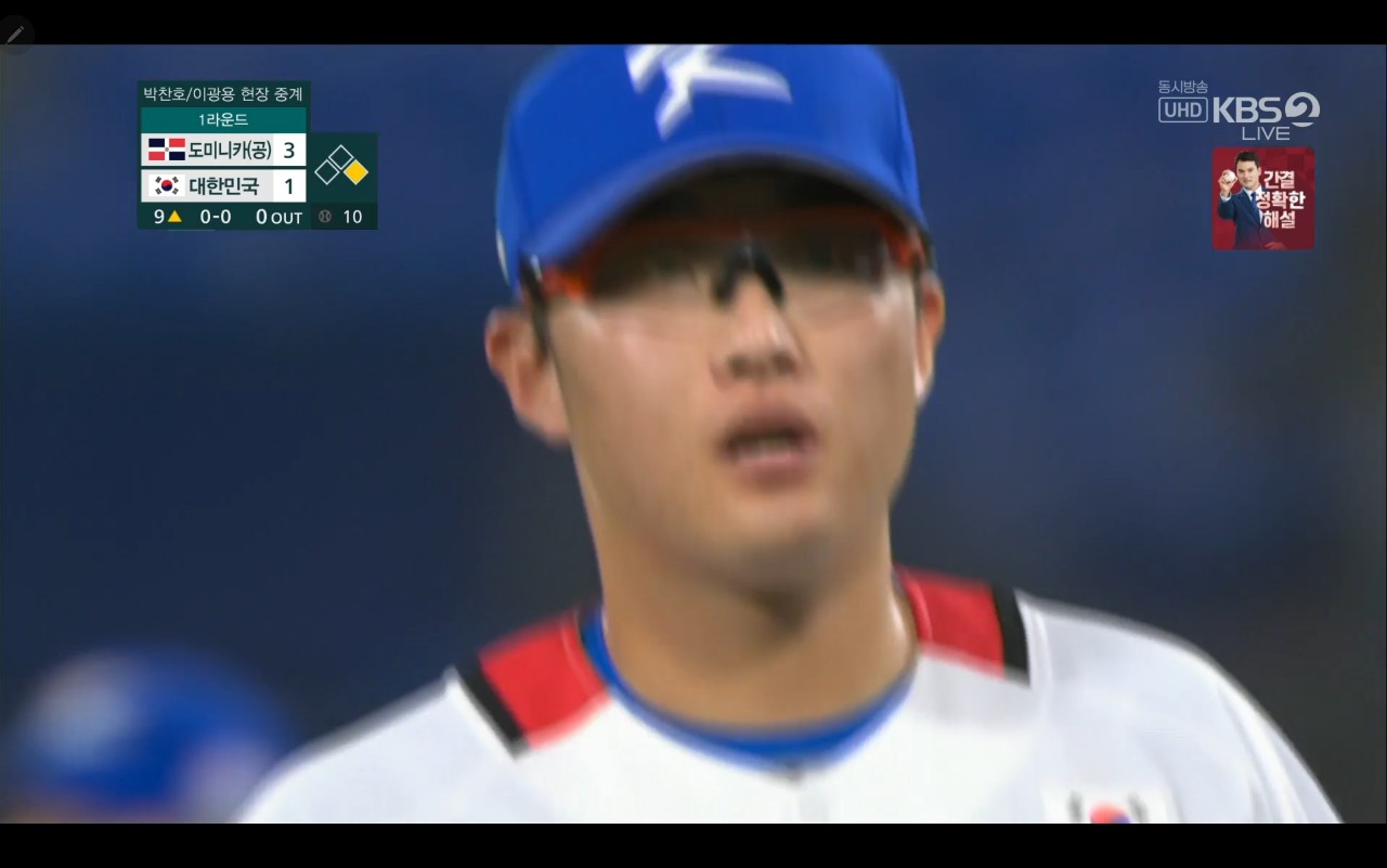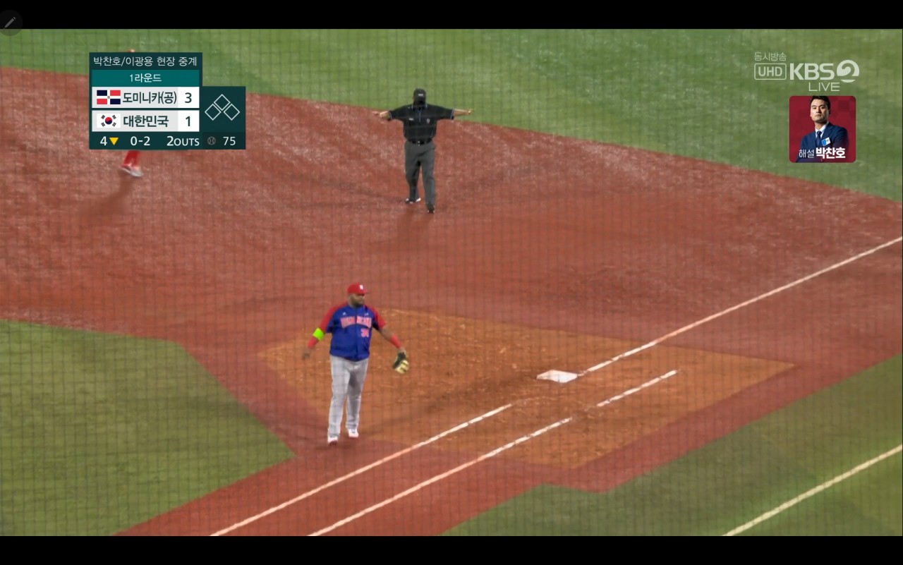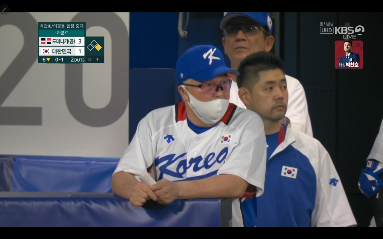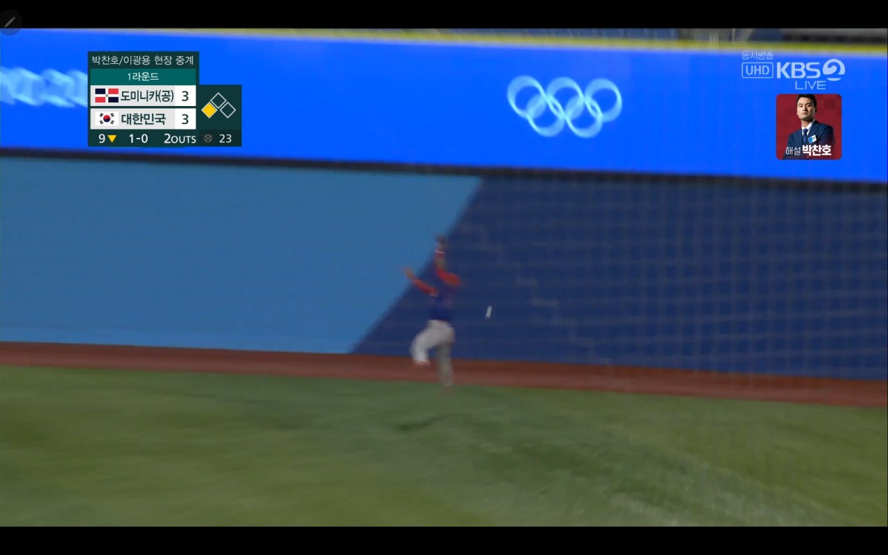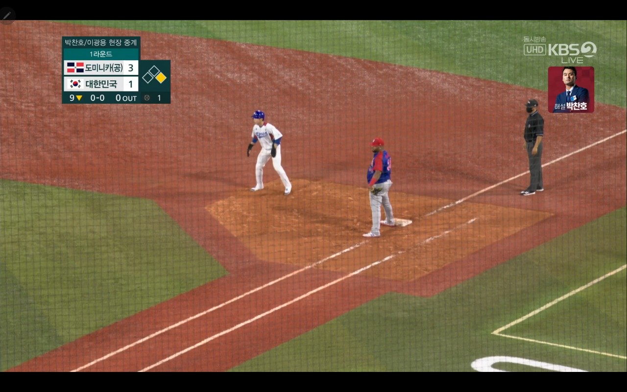 올림픽 야구 대한민국 대 도미니카(공) 경기장면