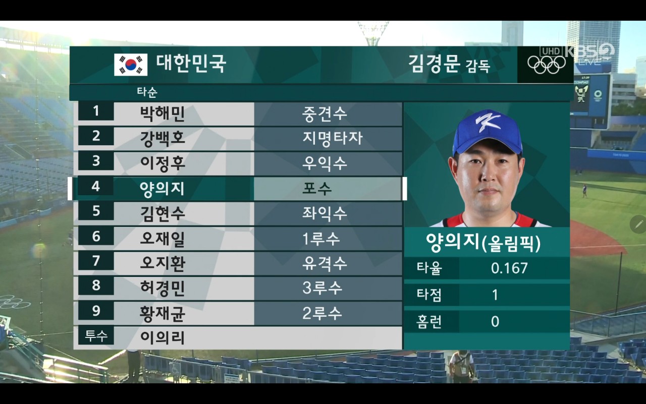 | 올림픽 야구 대한민국 대 일본 경기결과 + 경기장면 첨부 (0) | 2021.08.04 |