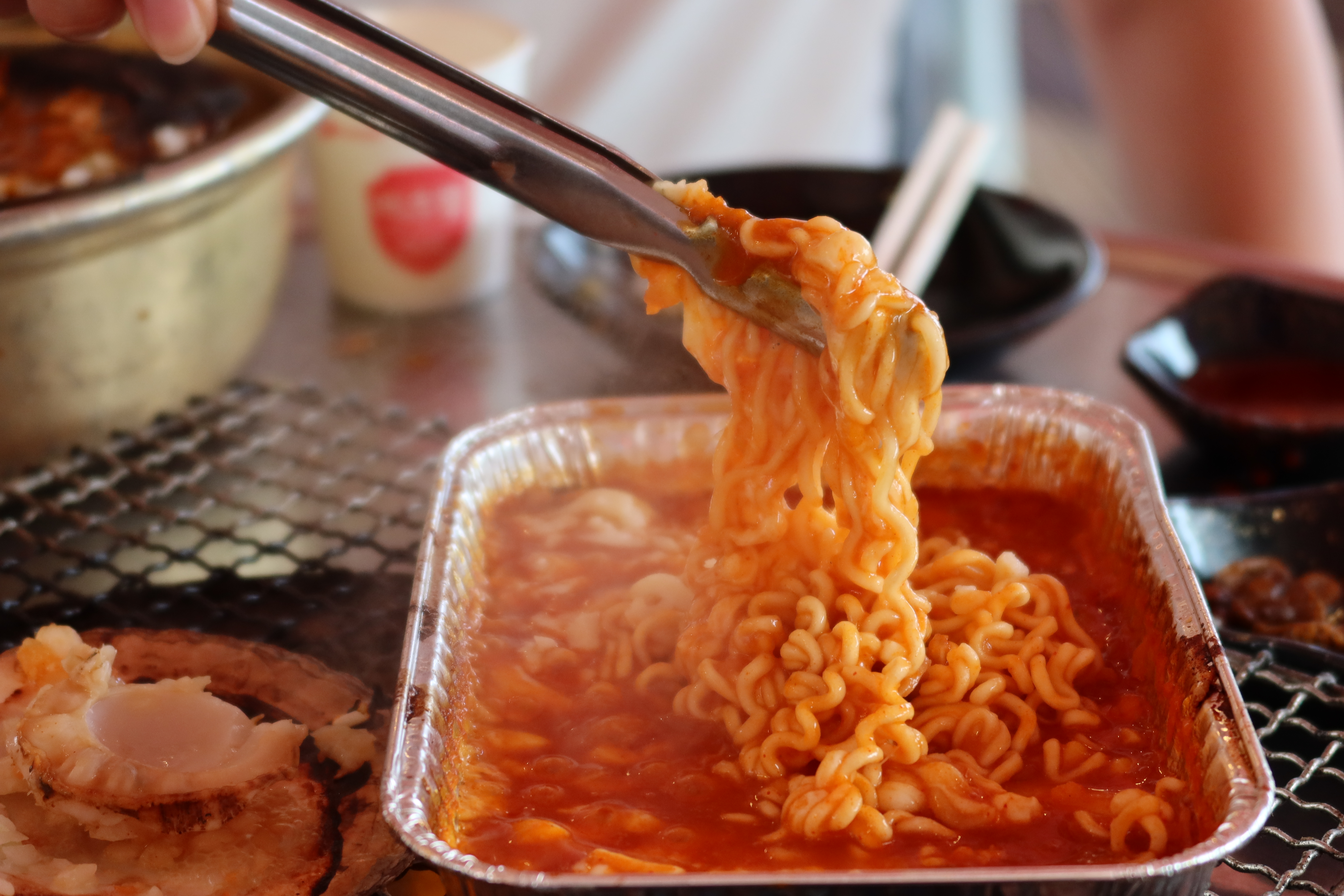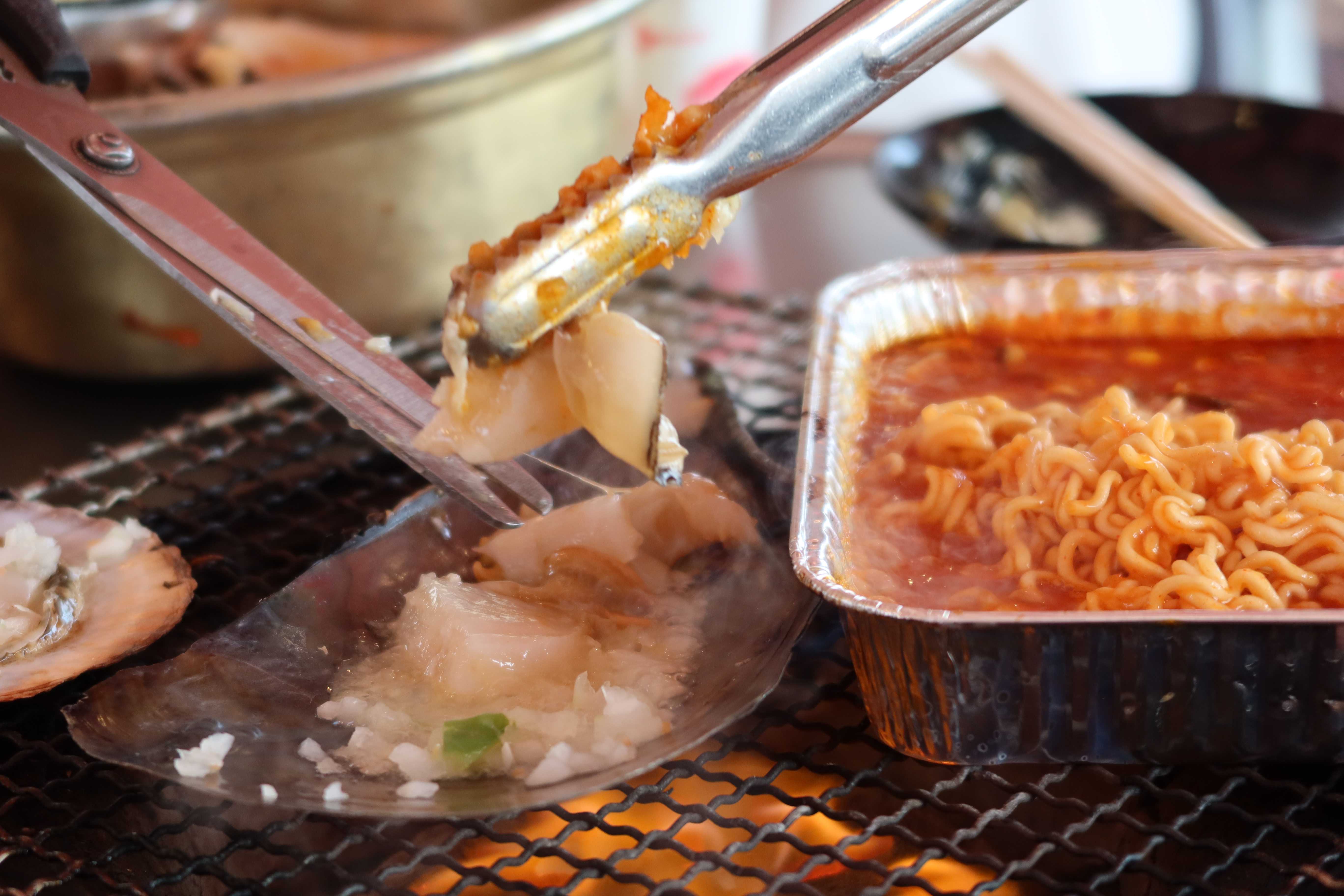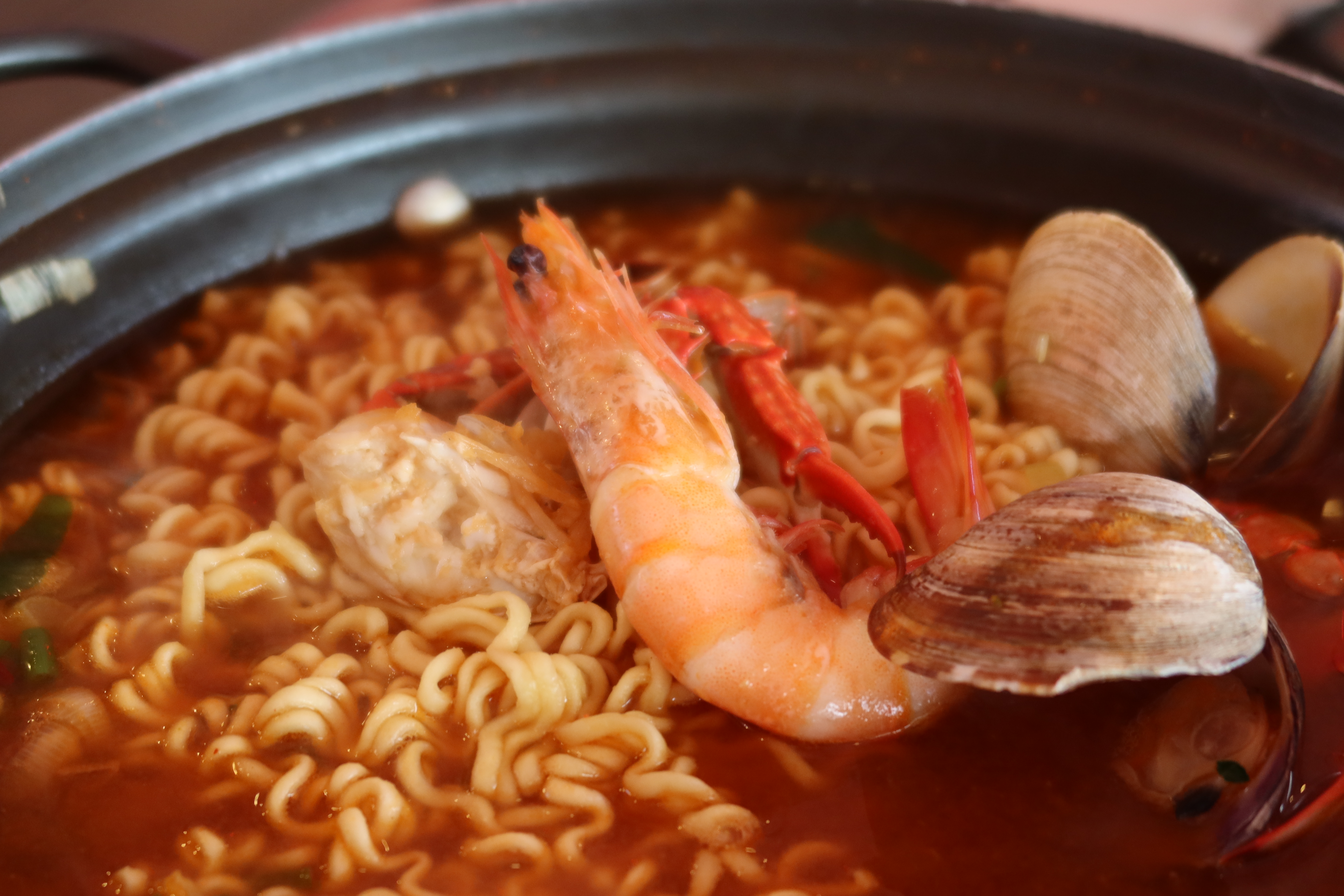 추가로 시킨 해물라면. 조개와 꽃게 그리고 새우가 들어가있어 국물을 시원하고