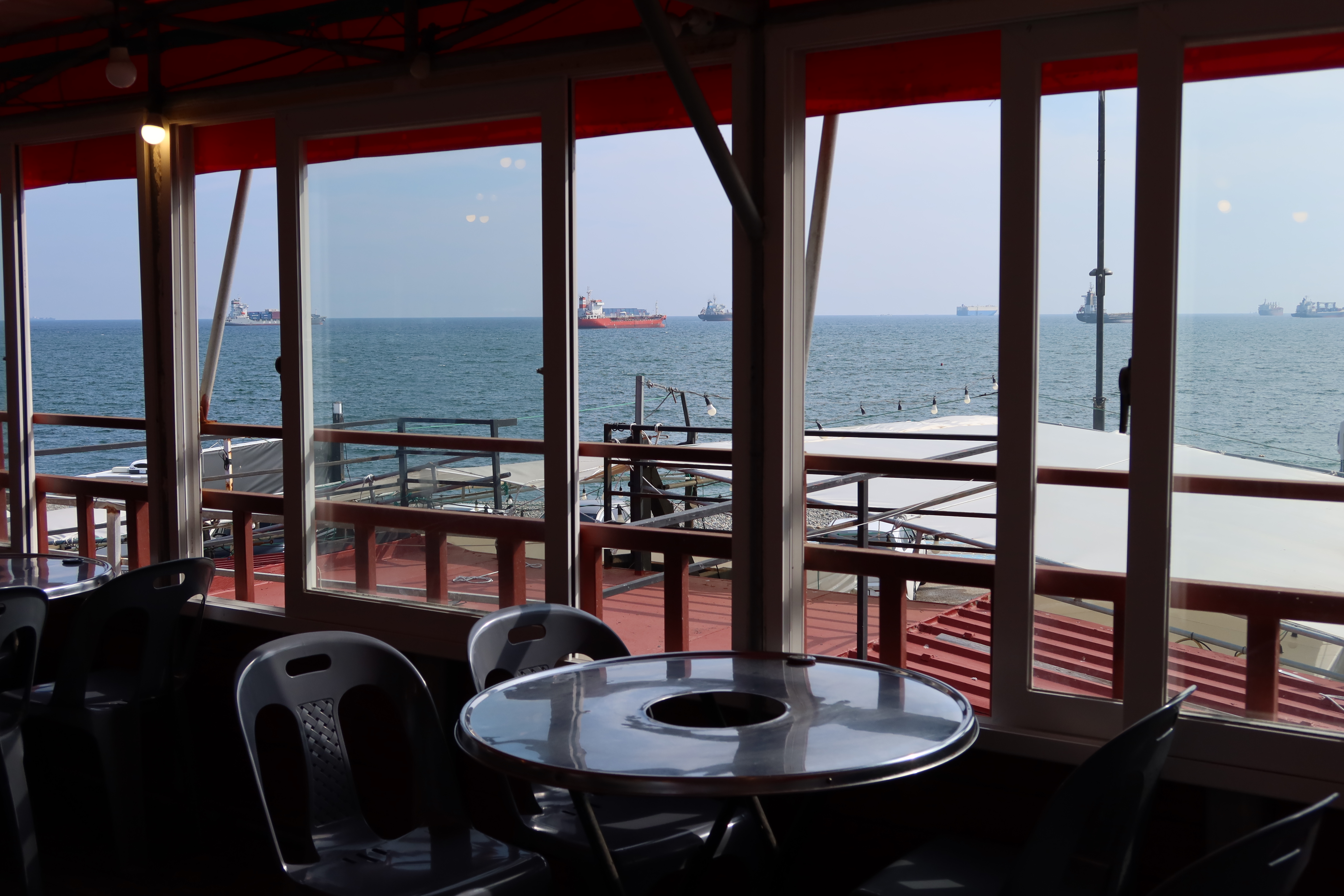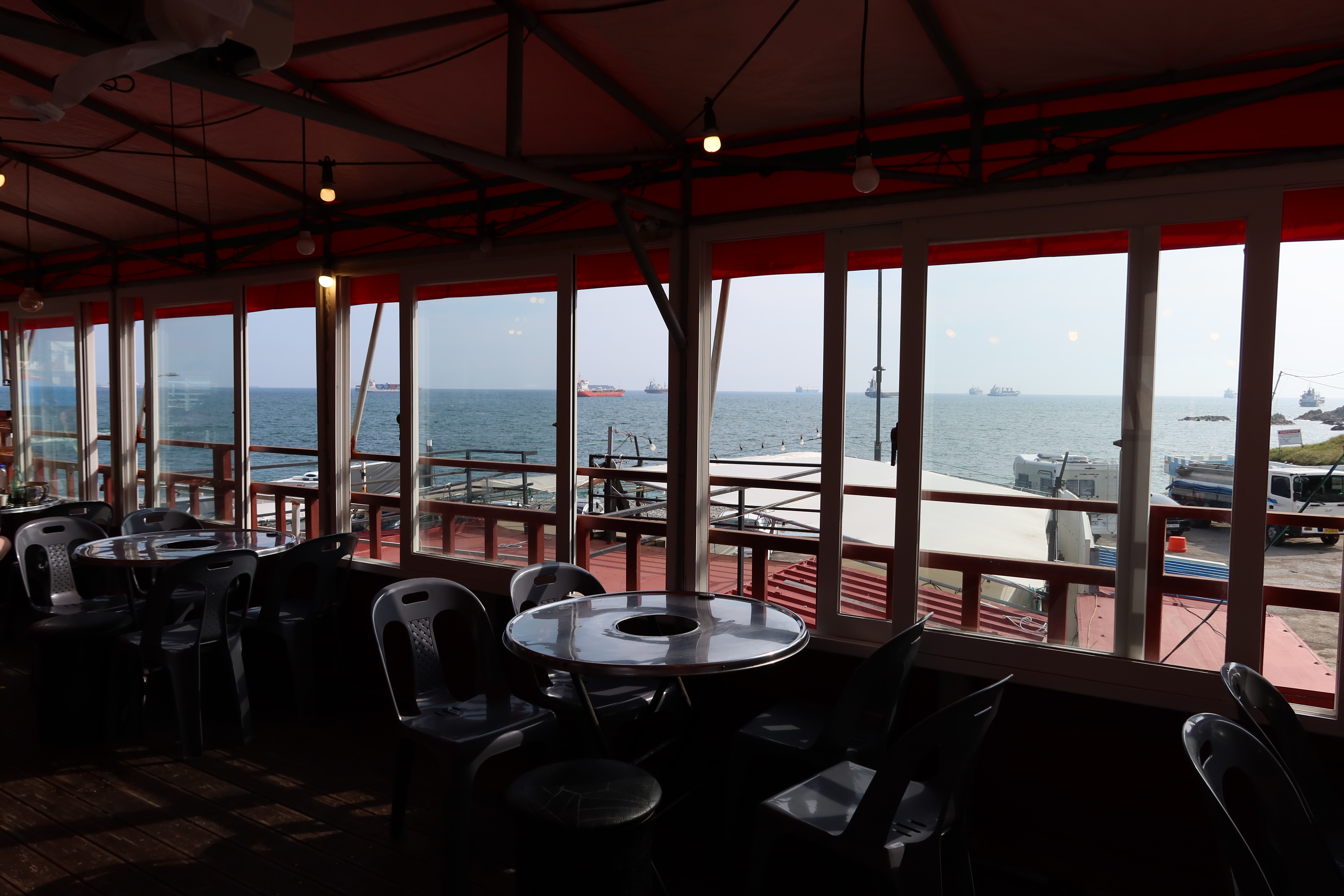 실내가 좀 어둡게 찍혔지만 바다 뷰 끝내주지요? 예전에는 앞에 자갈마당에 바로 조개구이 집들이 있었다고 하는데