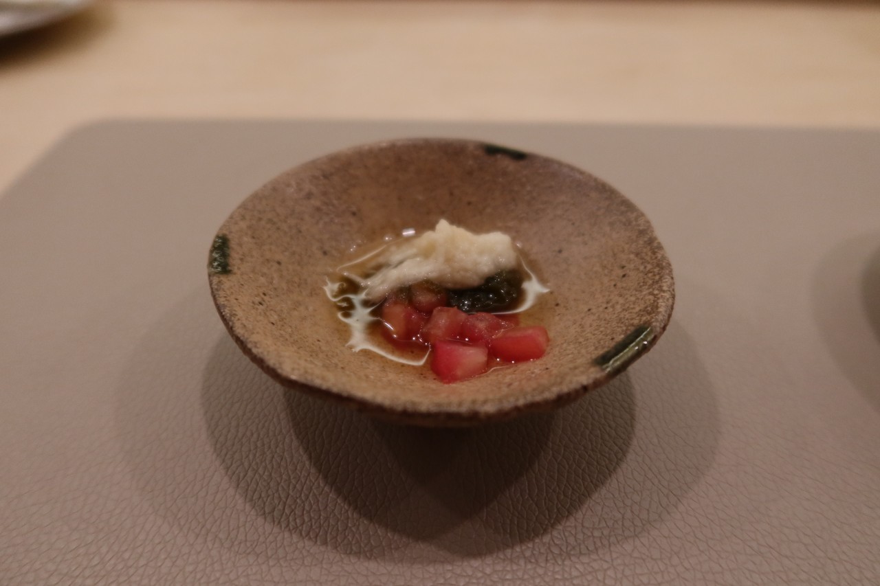 첫번째로는 토마토 해초 무침이 나오는데요,