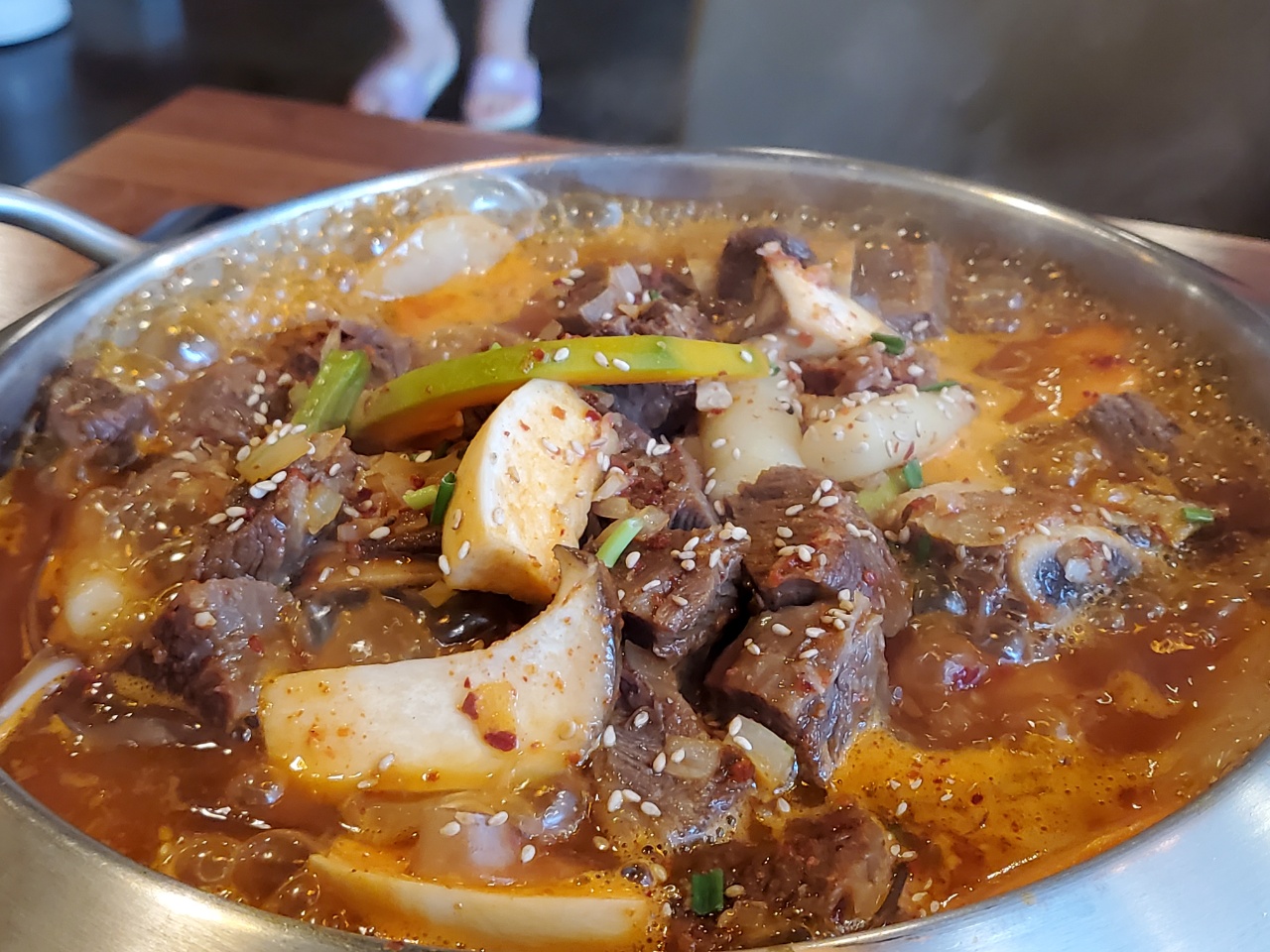 갈비찜은 다 익어서 나왔고, 조금 더 끓여 먹었어요. 양념 맛도 칼칼,달콤 너무 맛있고 부재료들도 많이 들어있었어요. 특이하게 양배추 채썬 것과 숙주도 들어있었어요. 당면도 넉넉히 들어있어 당면 킬러인 제가 추가 안해도 될 정도 였답니다. 고기도 엄청 부드럽고 결대로 쭉쭉 찢어지고 너무 맛있었어요.