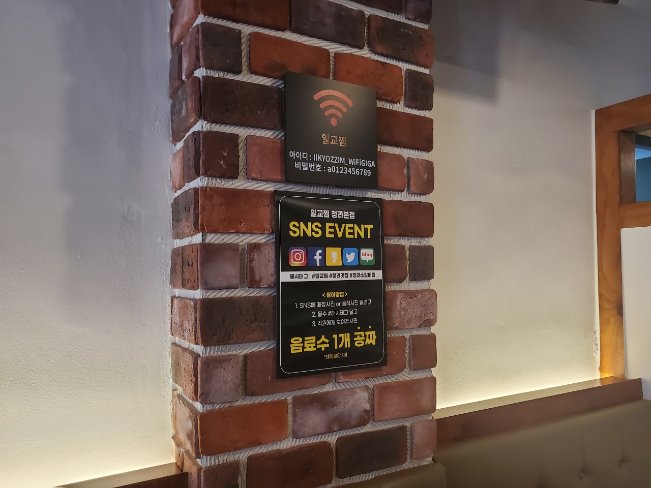 인천 청라 맛집 / 청라 갈비찜 맛집 일교찜 에서는 SNS 이벤트도 진행하더라구요. 인스타그램 / 페이스북 / 카카오스토리 / 트위터 / 블로그 중 한 곳에 포스팅을 하면 음료수 1개를 공짜로 받을 수 있어요. 소소한 서비스는 즐겁죠.