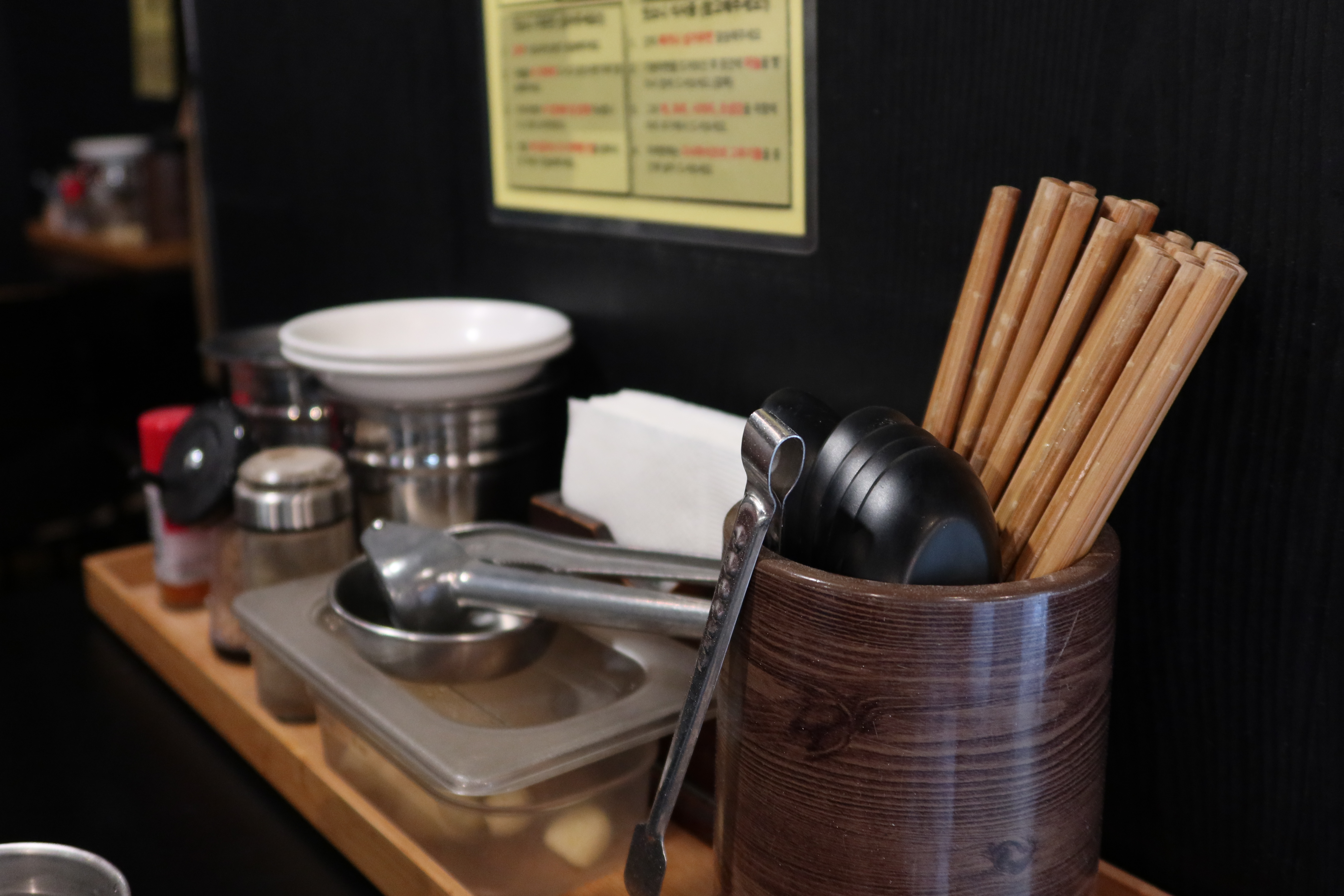 그밖에 김치도 준비되어있고, 후추, 고추기름, 다시마식초 등 기본적으로 돈코츠라멘집에서 볼 수 있는 구성이 준비되어 있어요. 이건 깔끔했어요ㅎㅎ. 특히 마늘다지기를 다른사람이 사용한 그대로 사용하는 경우가 한국에서 종종 있었는데 여기는 새것인걸 보니 매번 새것으로 교체하는 것 같았어요.