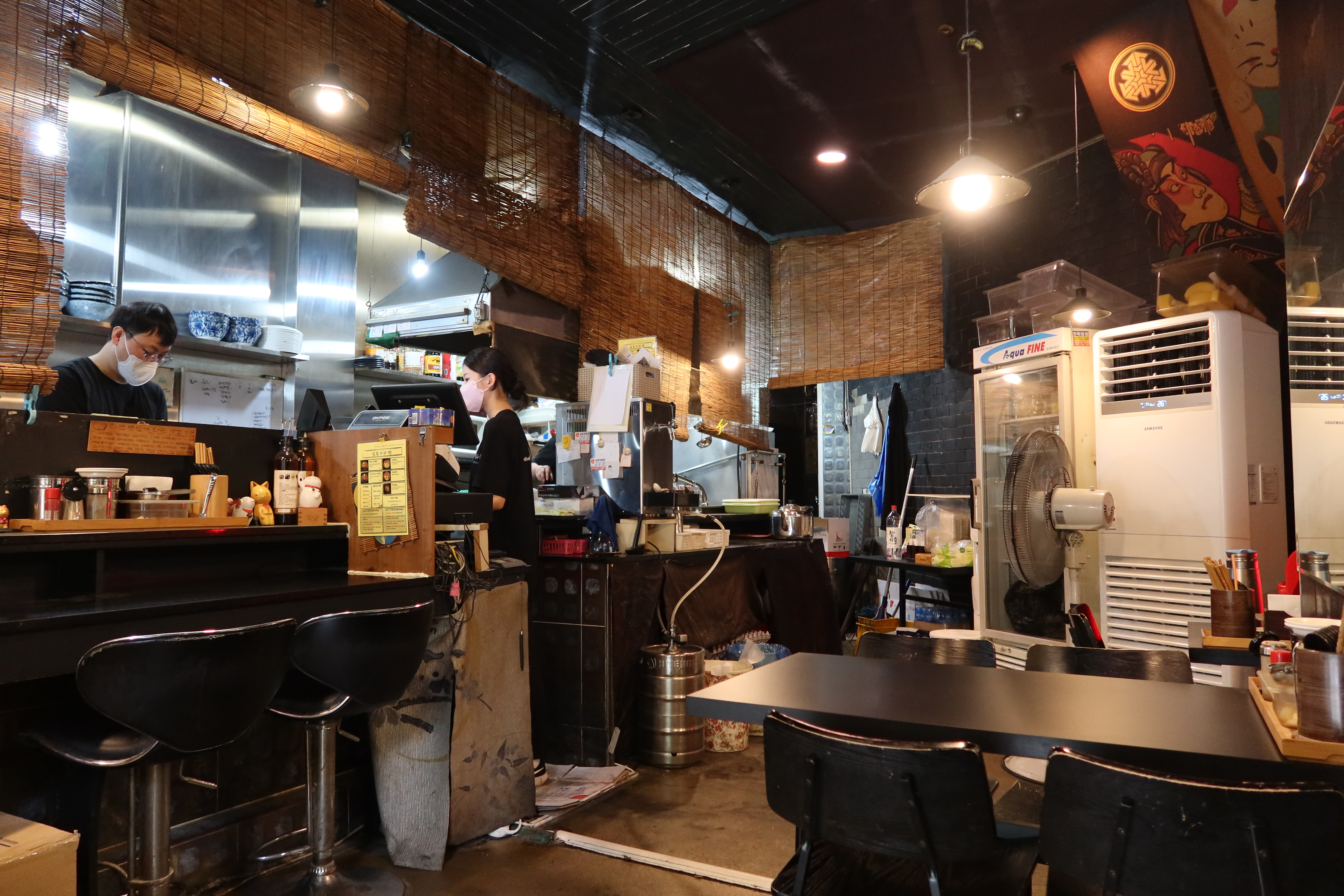카운터석과 테이블은 4~5석 정도 되어보이는 작은 가게에요. 사실 엄청 오래되진 않았을텐데.. 깔끔하지 못한 느낌이었어요. 오래된 노포들의 깔끔한데 오래된 느낌이 아니고 그냥 좀 지저분한 느낌이었어요..