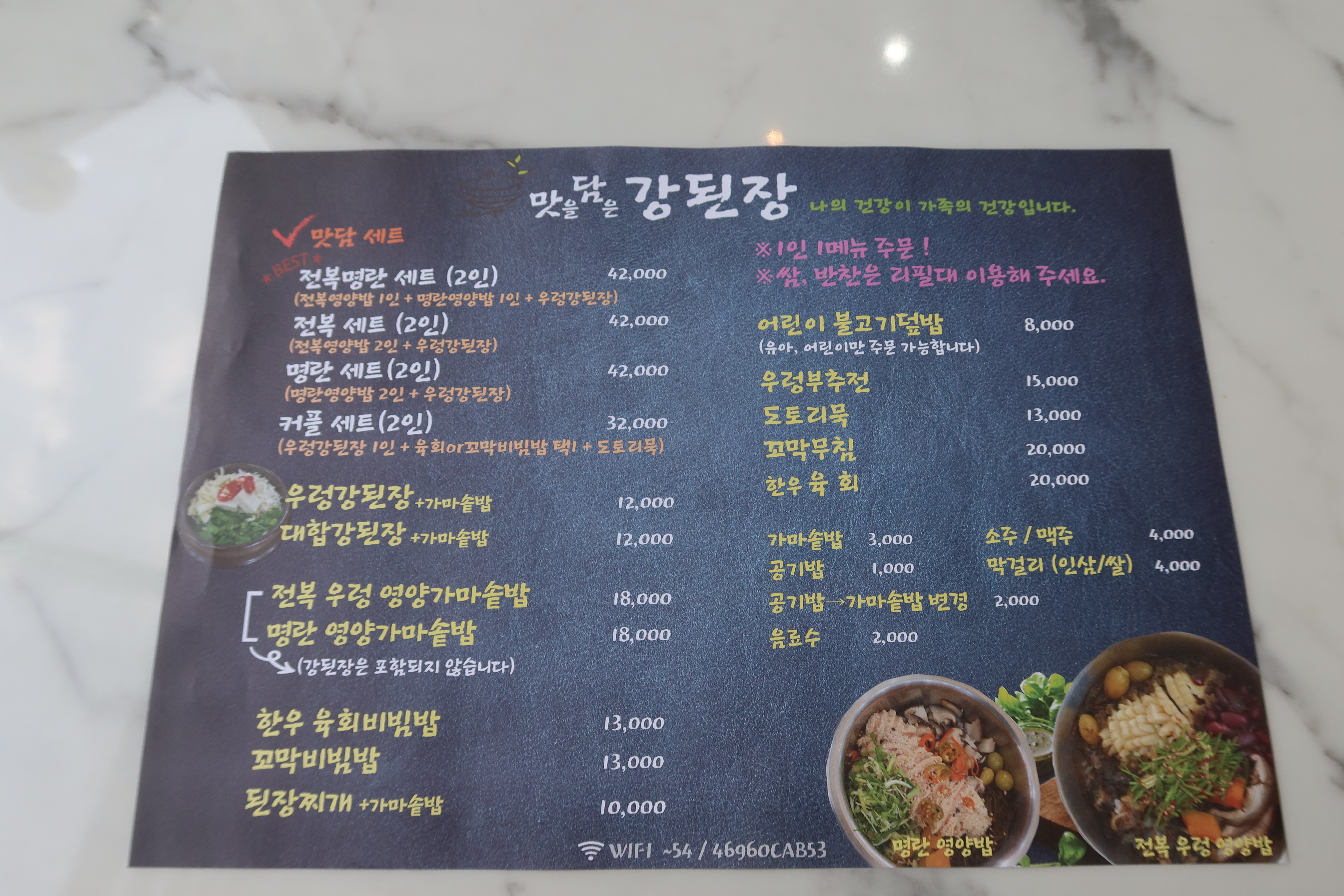 강화도 맛집 / 맛을 담은 강된장 메뉴판 입니다. 1인 1메뉴 주문원칙 이네요.