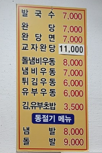 - 동절기 메뉴 냄발 8.000 / 돌발 9.000