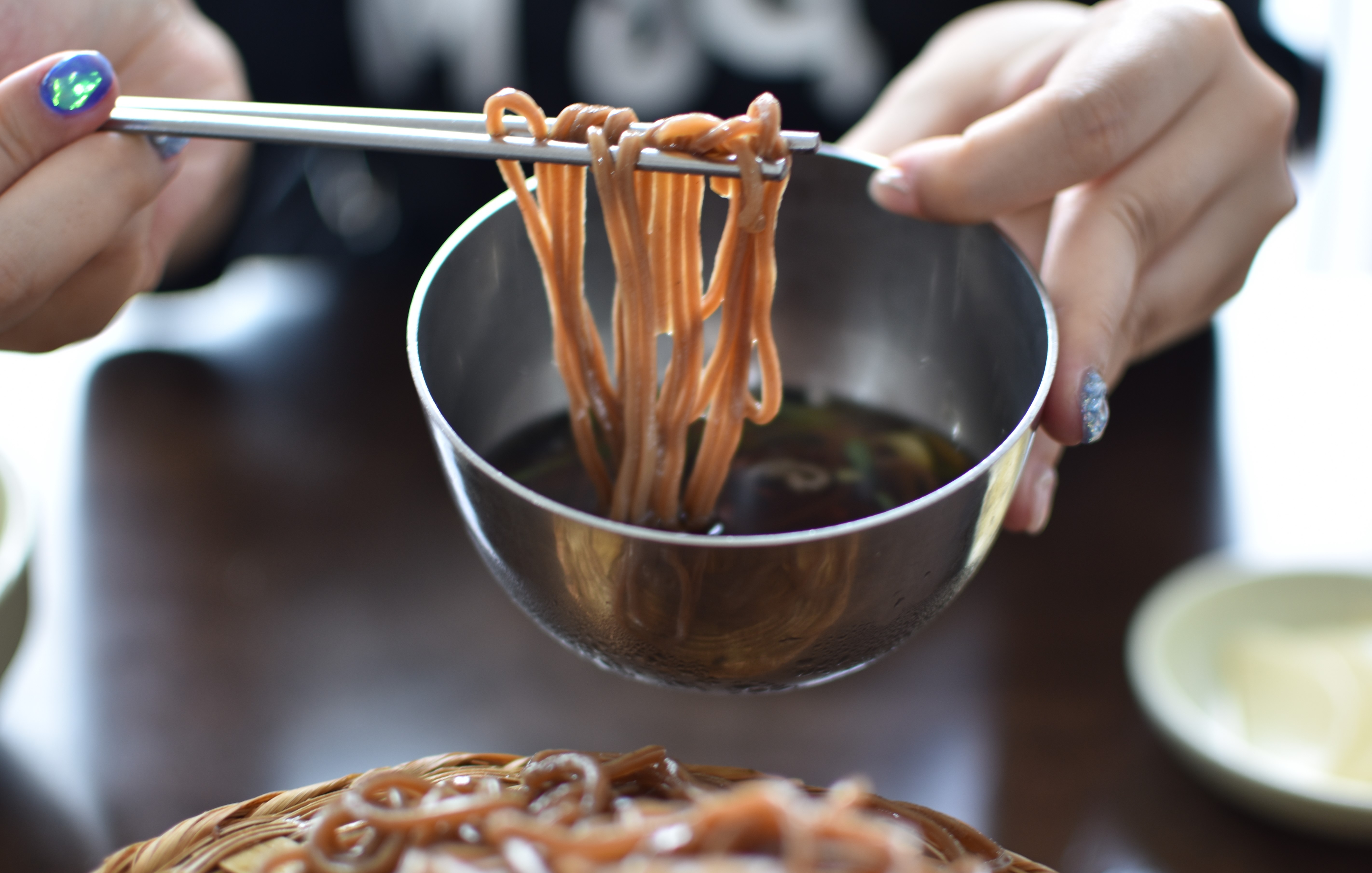 처음에는 모밀이 너무 부드럽게 후루룩 넘어가서 면에 뭘 발랐나,, 계란을 뭍혔나? 했었을 정도로 면이 부드럽답니다.