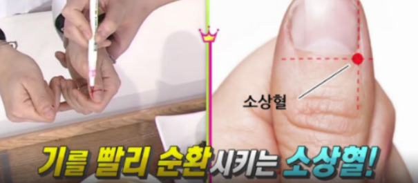 손을 딸 때에는 기를 빨리 순환시키는 소상혈을 따주는게 도움이 된다고 합니다.