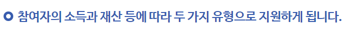 참여자가 어떤 유형에 해당하는 지에 따라 지원 내용이 달라집니다.