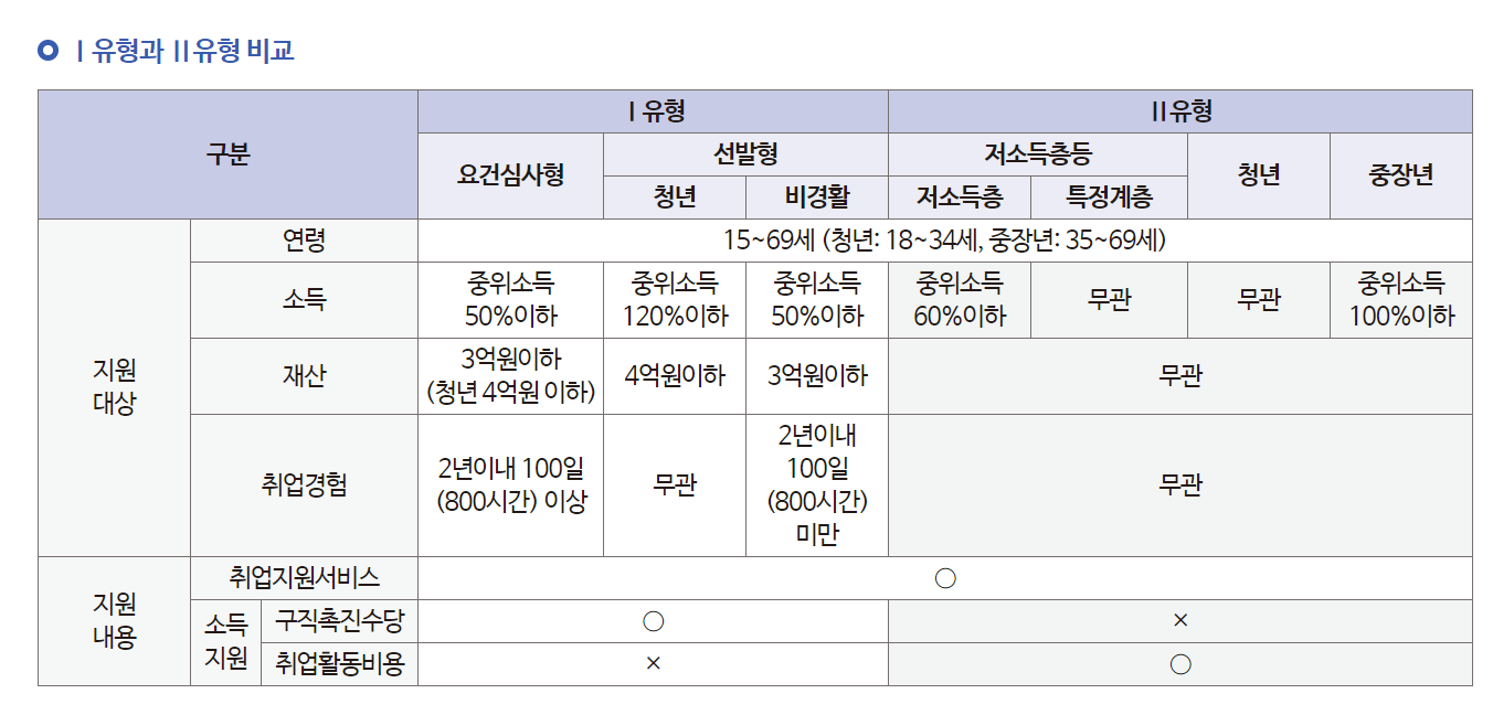 I 유형은 구직촉진수당 과 취업지원서비스를 함께 지원합니다.