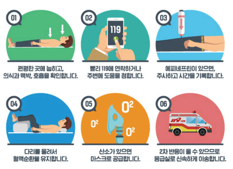 위 아나필락시스 증상이 나타나면 즉시 119로 연락하거나 가까운 응급실로 내원하시기 바랍니다.