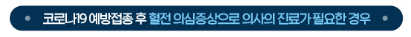 - 접종 후 4주 내 호흡곤란, 흉통, 지속적인 복부통증, 팔다리 부기와 같은 증상이 나타난 경우