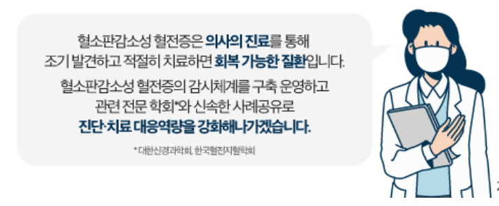 - 일반 혈전증과 달리 발생 확률이 희박하고 혈소판 감소를 동반한 뇌정맥동혈전증, 내장정맥혈전증 등과 같은 희귀한 혈전증 입니다.