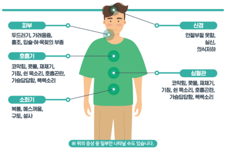 💡 가벼운 알레르기 증상이 계속될 경우 항히스타민제 등 처치가 필요할 수 있으므로 의료기관을 방문하시기 바랍니다.