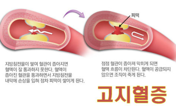혈액 속에 콜레스테롤과 같은 지방 성분이 필요 이상으로 많은 상태를 고지혈증(hyperlipidemia)라고 합니다.