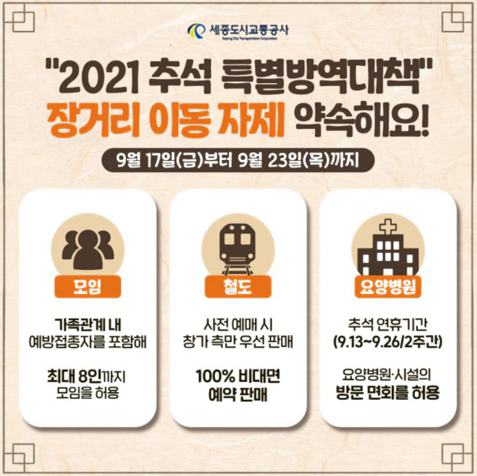 즐거운 명절 방역 수칙 잘 지키셔서 건강하고 알찬 한가위 보내시길 바랍니다.