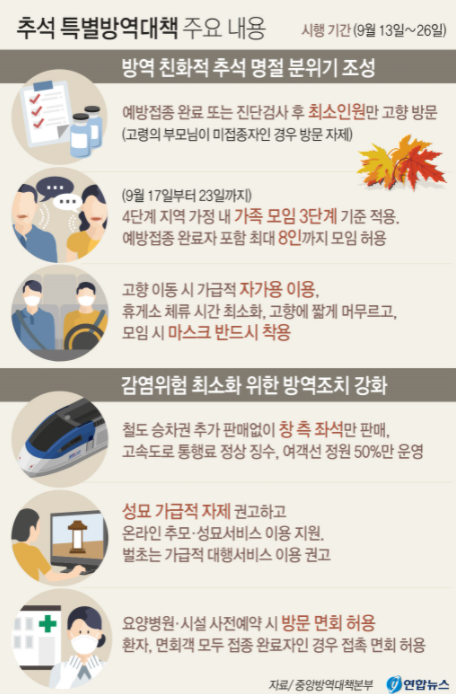 추석 연휴 가족모임 8명까지 완화 / 추석연휴 주요방역수칙 총정리